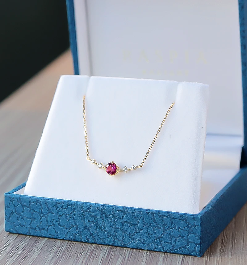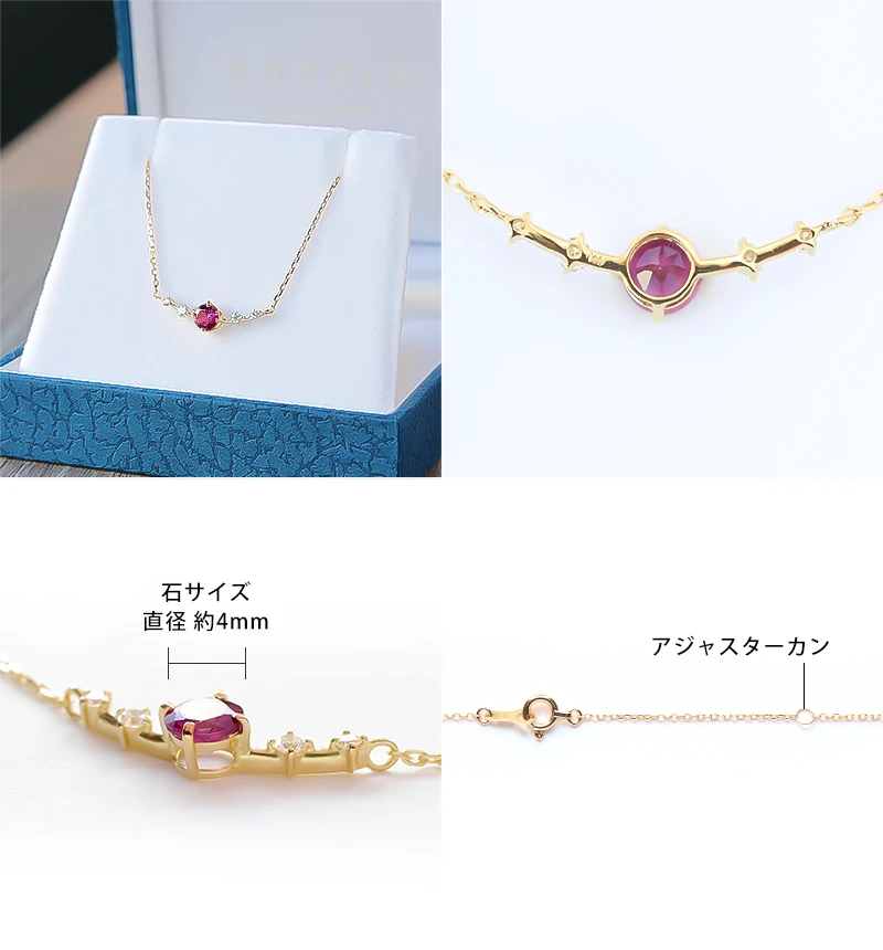 石が主役になる、そして鮮やかなカラーストーンの美しいきらめきが楽しめるネックレスになるように、細部までこだわり作り上げています。小さく繊細でありながら胸元で確かな存在感を発揮します。