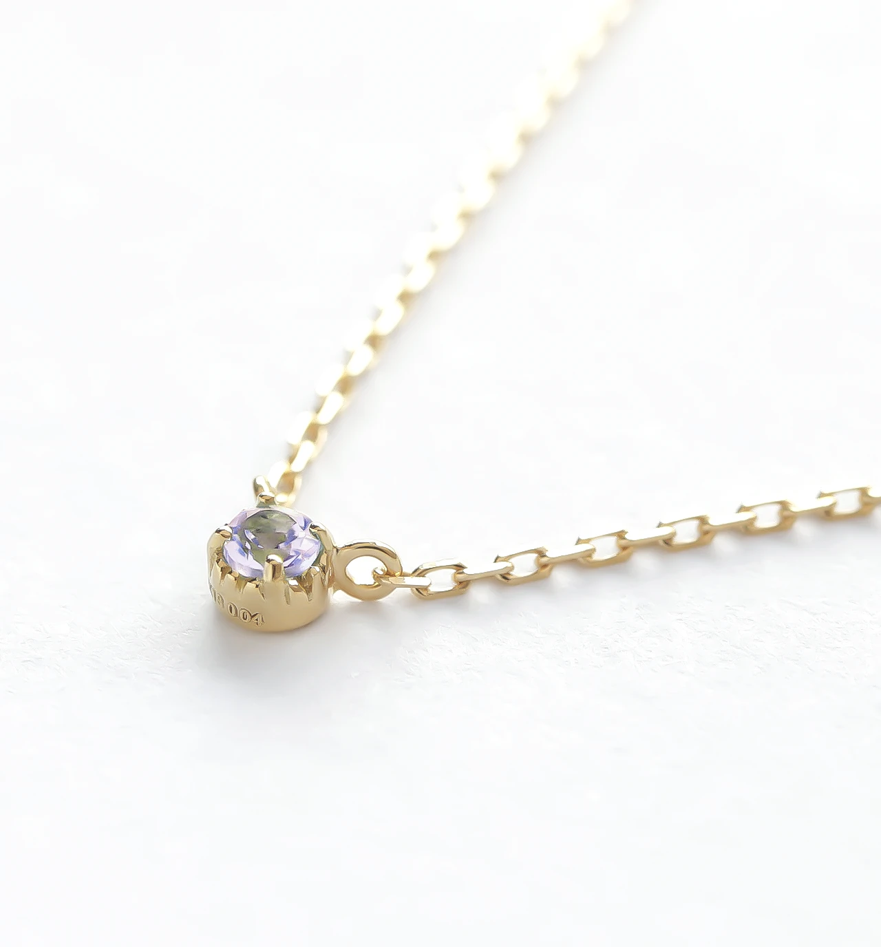 ラベンダーカラーが美しいタンザナイトを使用したシンプルな一粒ネックレスです。タンザニアのメレラニ鉱山でしか産出されず、20世紀に発見された新しい宝石のなかで、最も人気を博したといっても過言ではありません。美しい夜空を彷彿とさせる青紫色、品があり落ち着いた色合いが魅力的な宝石です。