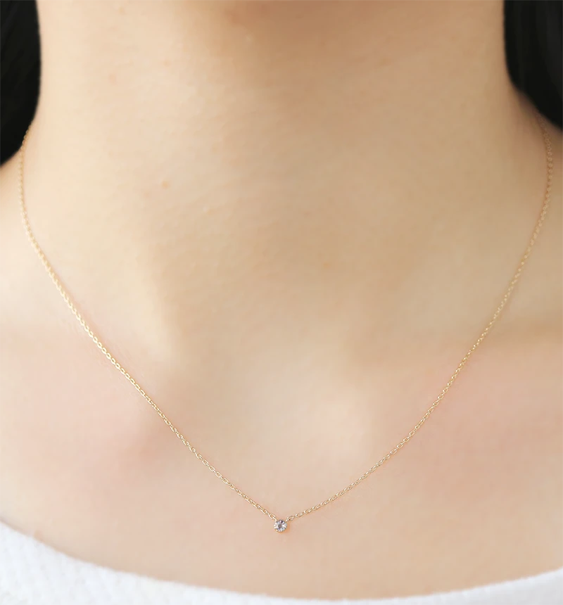 素材は全てイエローゴールドを使用している為、高級感がありつつ、チェーンは細くトップも小ぶりで華奢なので、ジュエリーが苦手な方でも着用しやすいデザインです。