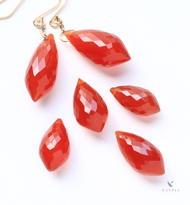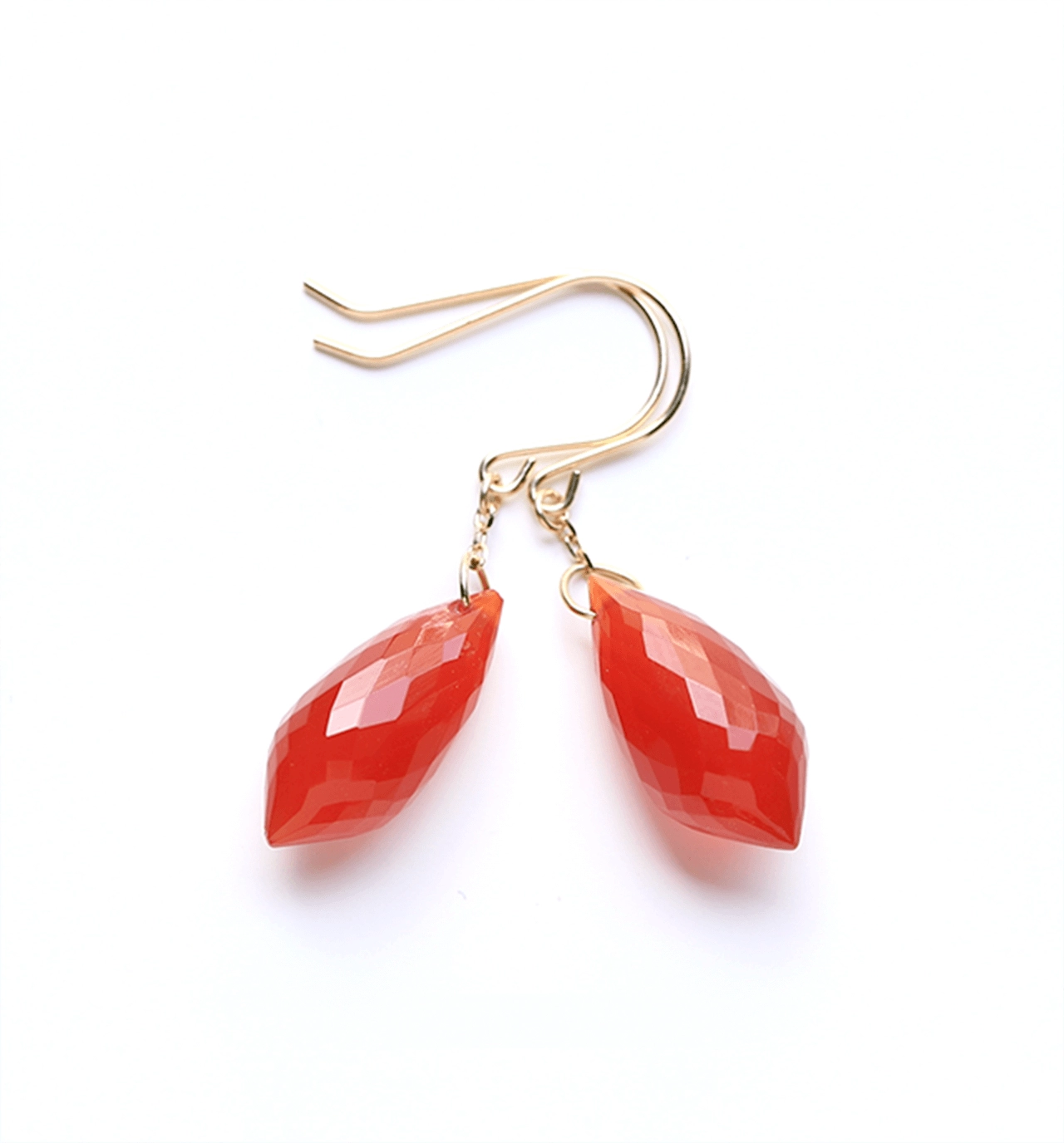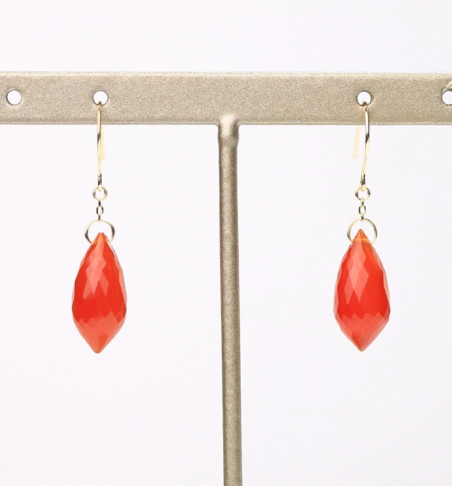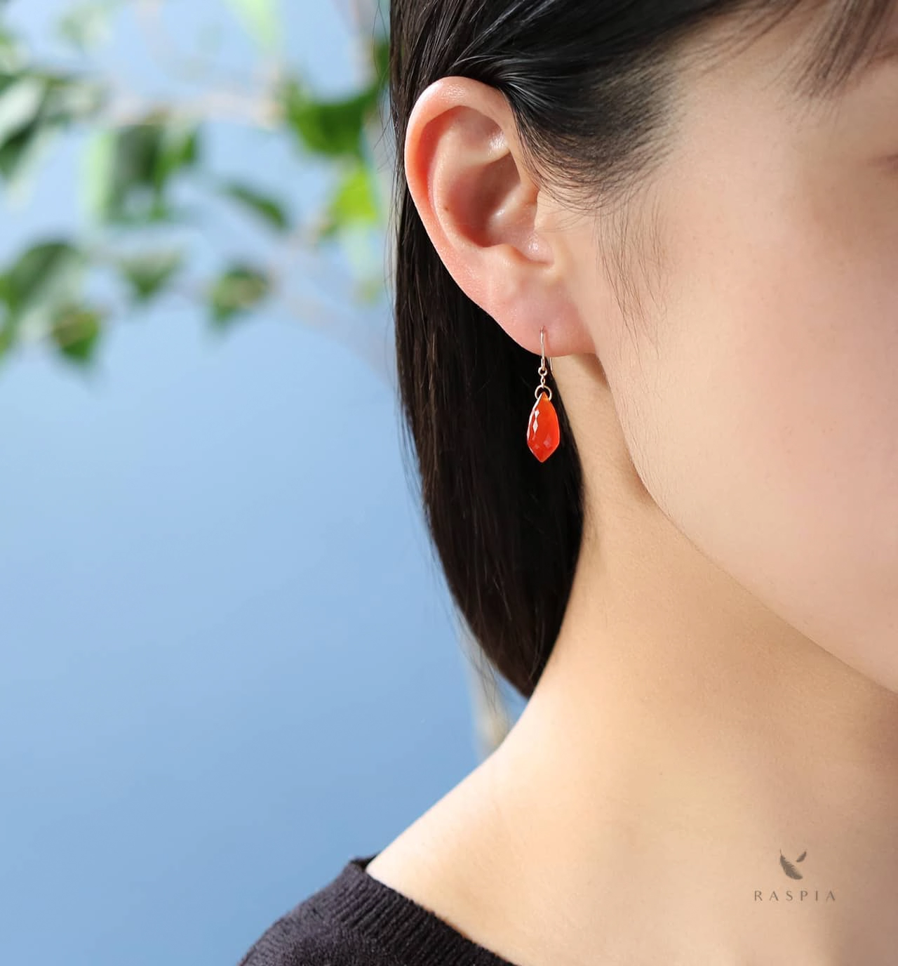燃えるような発色と、細かいカットのきらめきが印象的なカーネリアンのピアス。