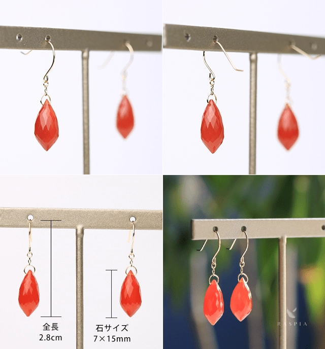 | 素材 | K10 / カーネリアン(シャンデリアカット) ※フックピアスパーツのみK18に変更可能です。(チャーム部分の金具はK10のままになります。) | カテゴリ | |