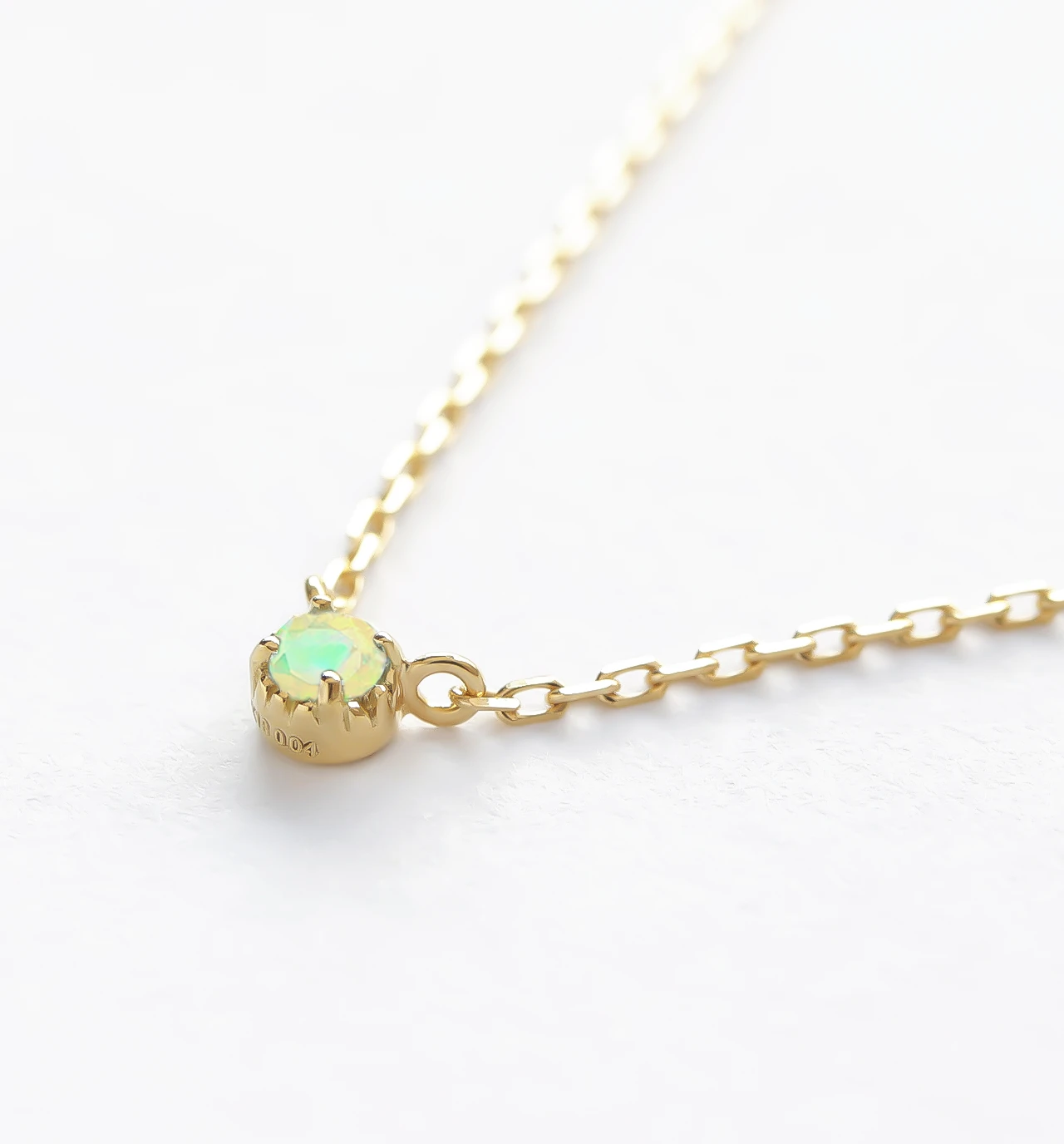 エチオピア産の高品質なプレシャスオパールを使用したシンプルな一粒ネックレスです。オパールを動かすとキラキラと浮遊する虹色の輝き「遊色効果」は、まるで万華鏡のように幻想的で美しく、同じ輝きのものがないと言われるほど多彩な色合いをもっています。オパールは10月の誕生石です。