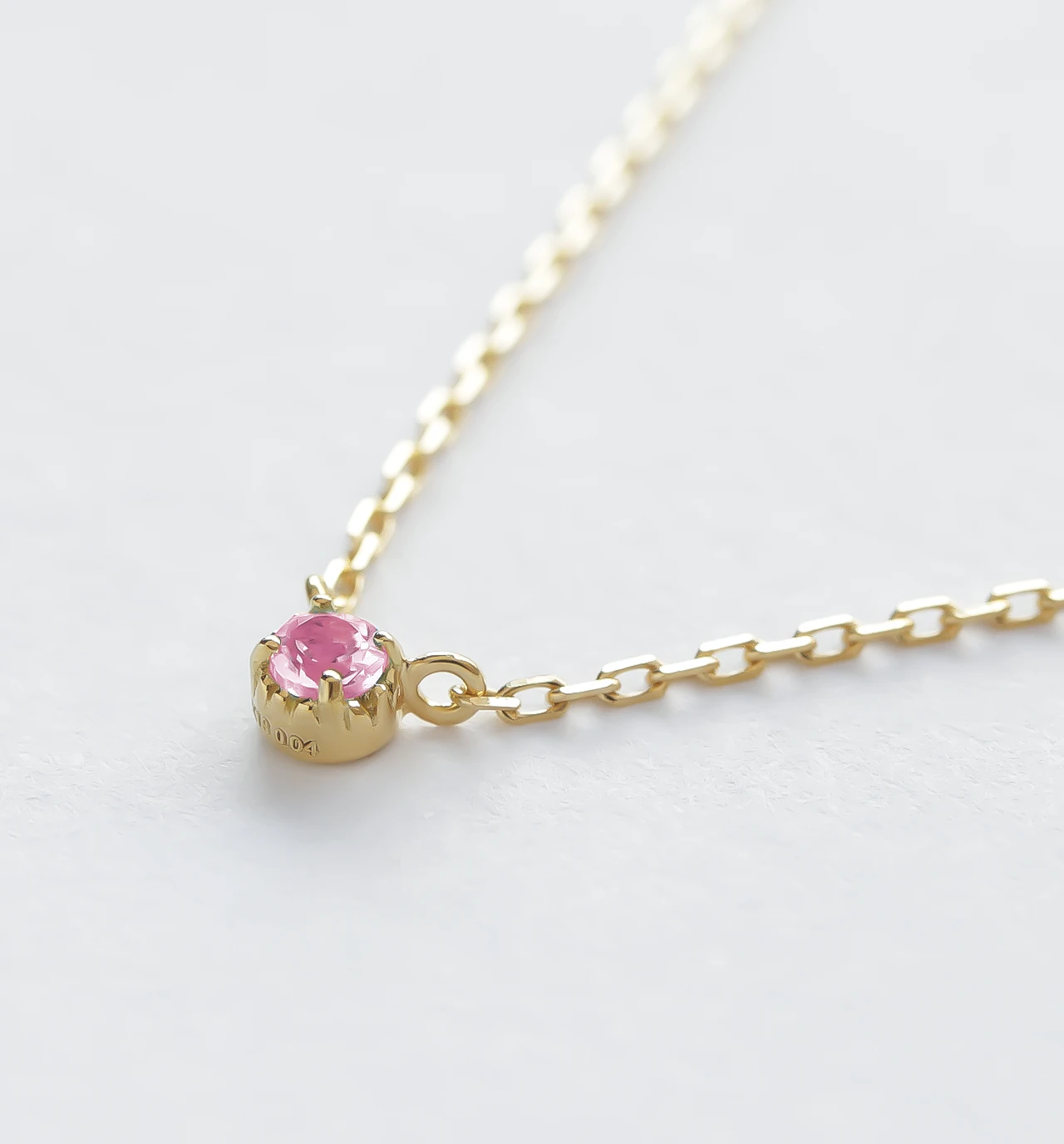 あずきチェーンにピンクサファイア1石の、シンプルで飽きのこないネックレスです。