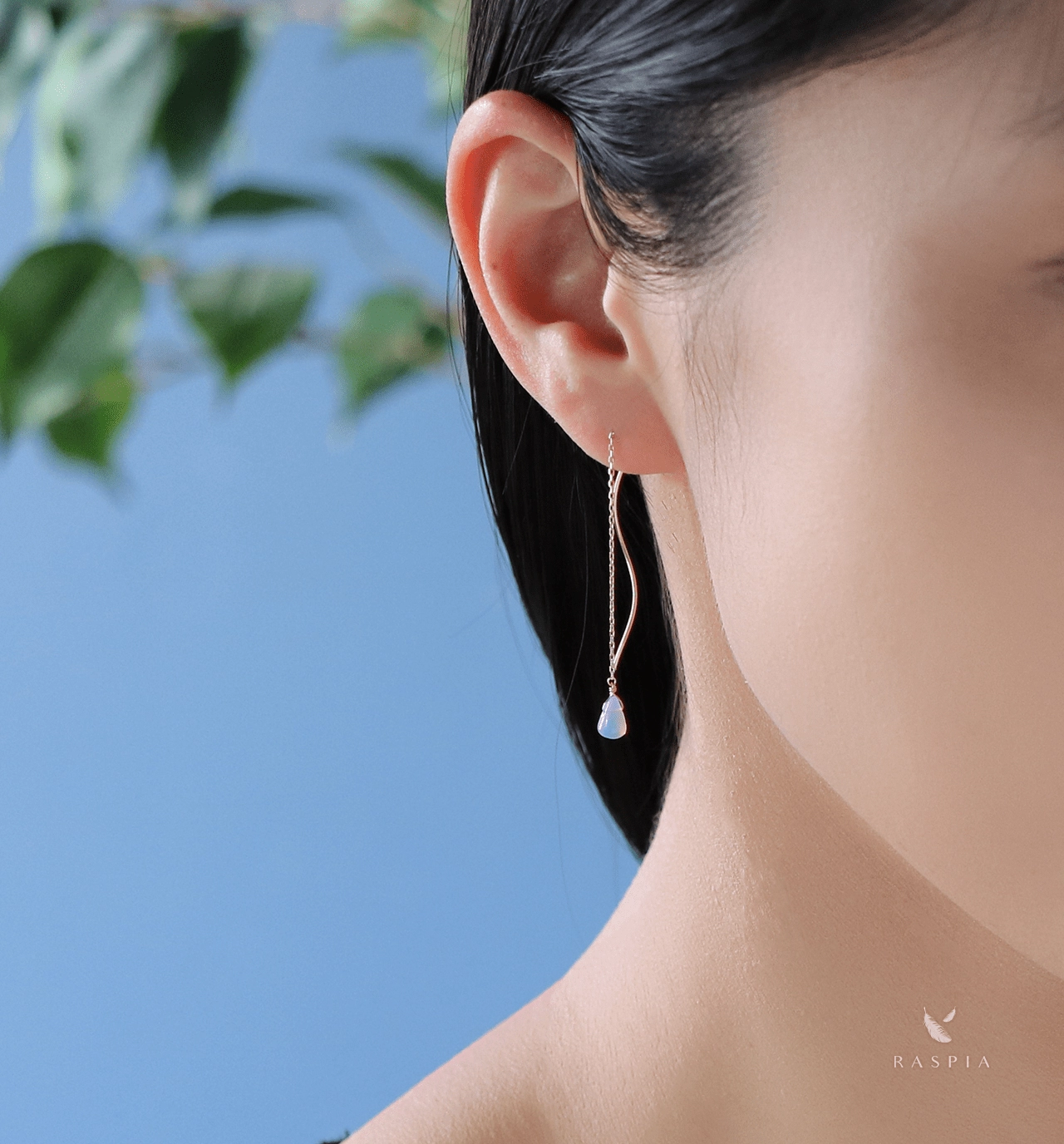 つるんとした透き通るホワイトに色とりどりの光を見せるオパールを使用したピアス。