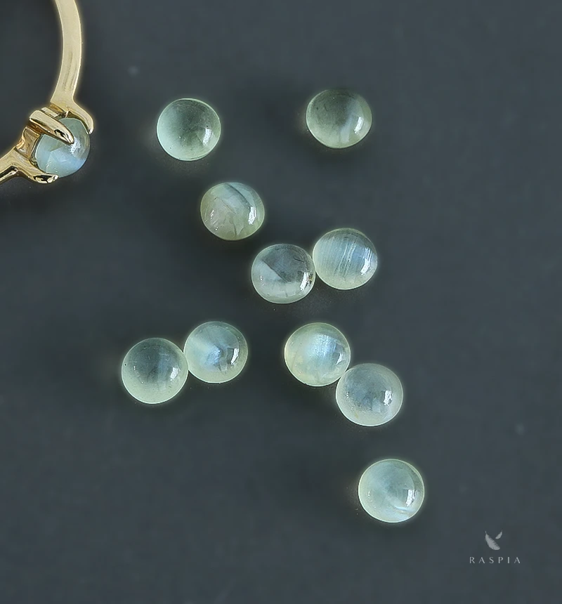 高いモース硬度を持ち耐久性に優れているため、普段使いにもぴったり。黄緑色がかったハニーカラーが可愛らしくも、どこかミステリアスな雰囲気を醸し出すクリソベリルキャッツアイ。光の角度で魅惑的に輝き、思わずずっと眺めていられそうな宝石です。