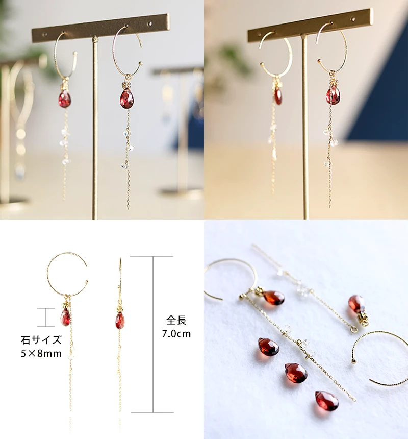 | 素材 | K10 / アルマンディンガーネット(平ドロップ) / ハーキマーダイヤモンド | カテゴリ | |