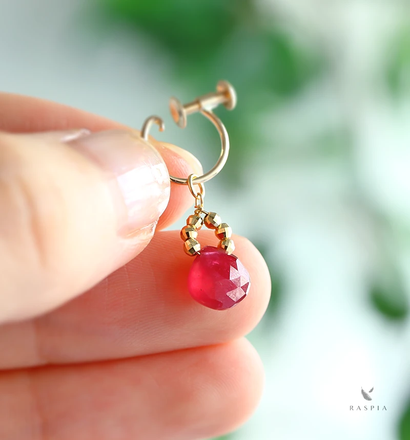 | サイズ | 【イヤリング】サイズ:直径10mm×太さ0.7mm【石】ルビー:約7mm×7mm【チャーム丸カン内径】約2mm | ||
