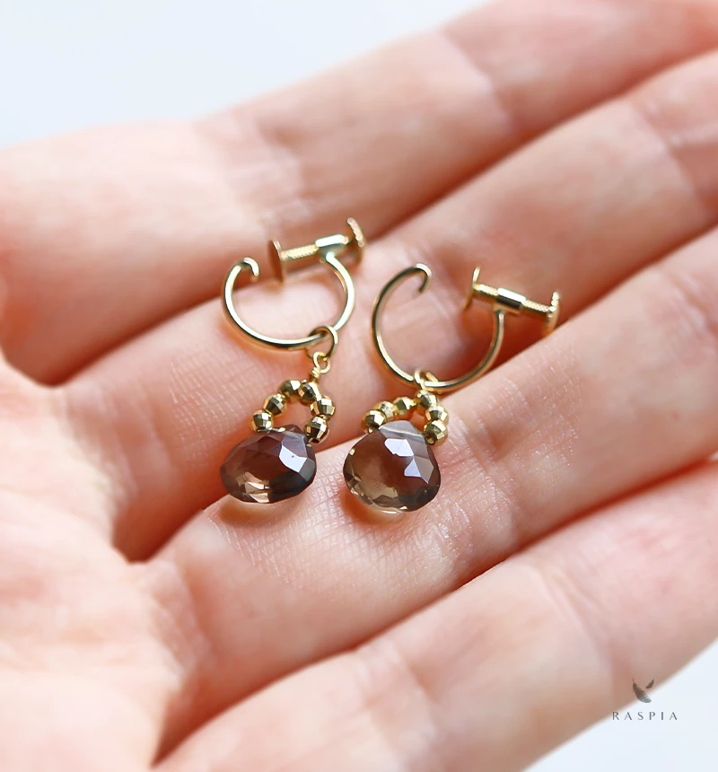 アンニュイな雰囲気漂う、上品な色合いが特徴のスモーキークォーツのK18のイヤリングです。