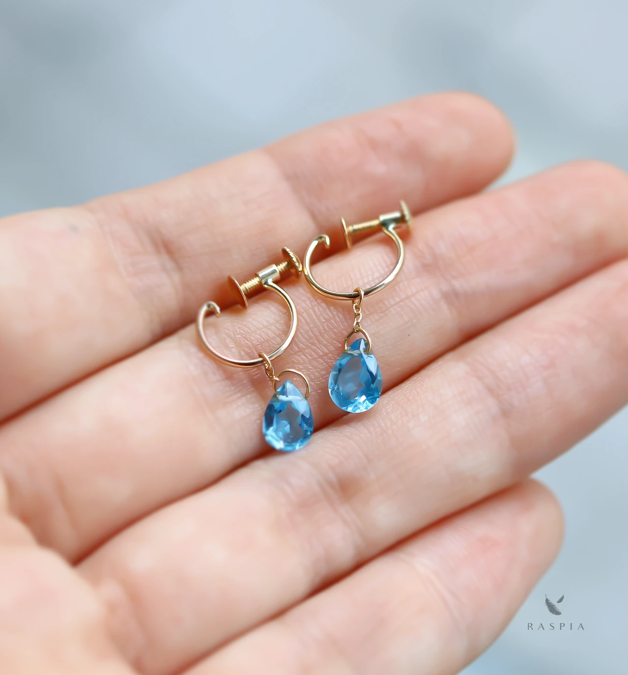 小ぶりで愛らしい、スイスブルートパーズのイヤリング。