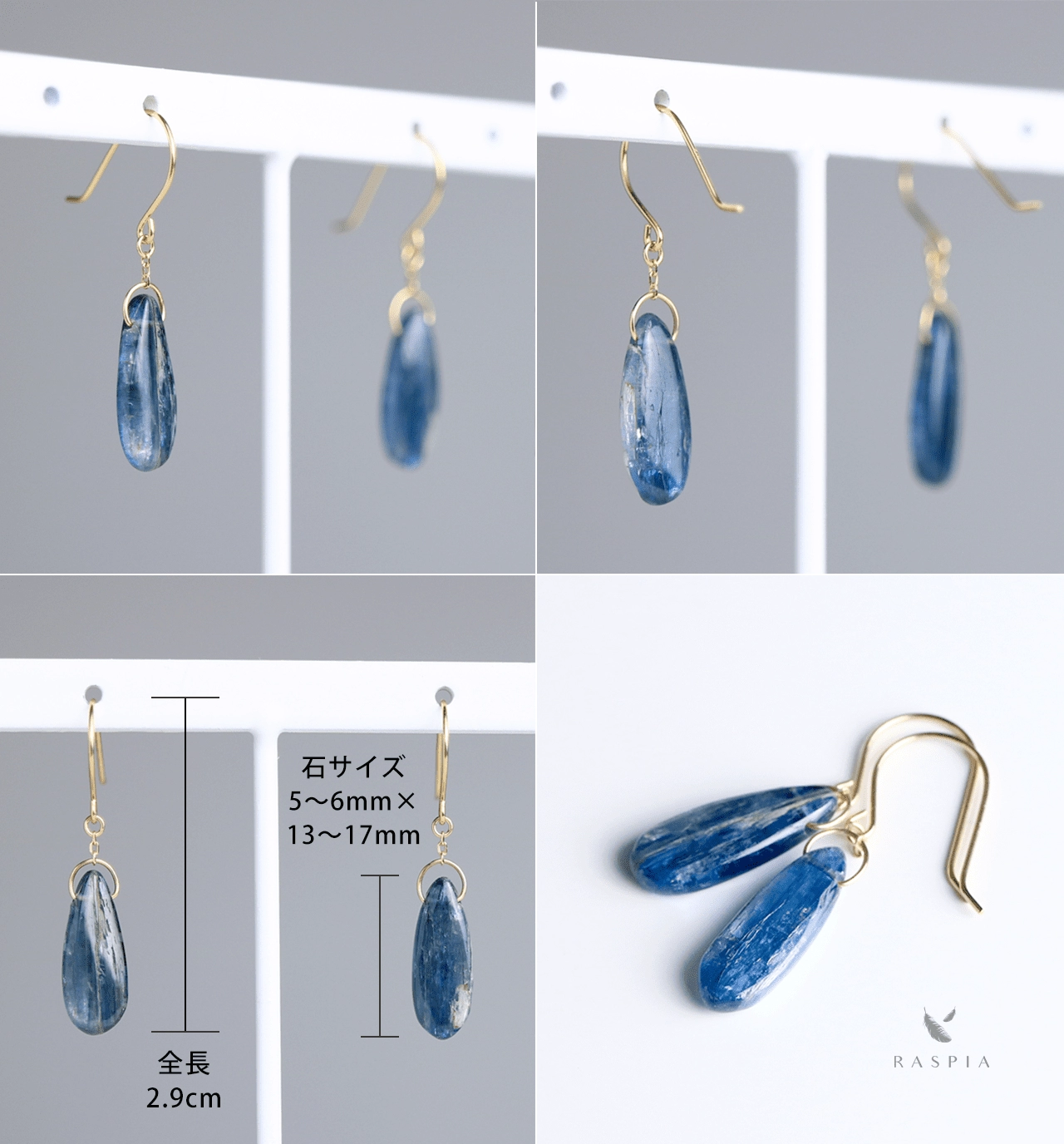 | サイズ | 【ピアス】サイズ:縦 約14mm×横 約10mm フックの太さ 0.5mm【石】カイヤナイト:約5〜6mm×13〜17mm | ||