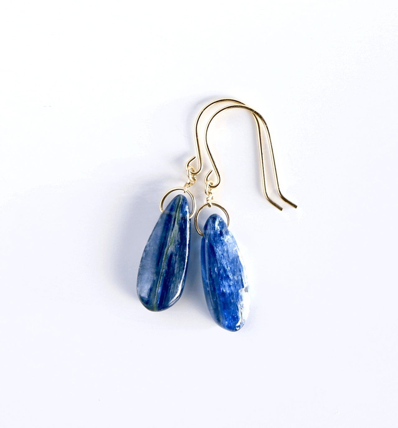 柱状の結晶に繊維のような縦筋が走り、カイヤナイトの結晶をそのまま切り出したようで天然の魅力を感じて頂けます。