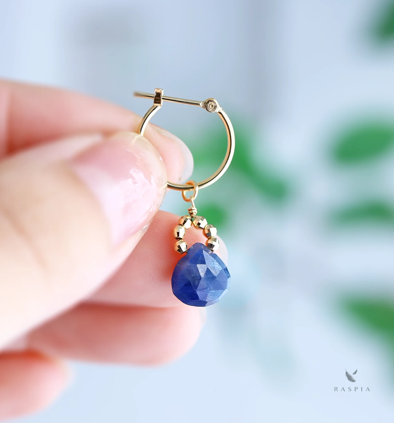 | サイズ | 【ピアス】サイズ:直径 13mm×太さ1mm ポストの太さ 0.7mm【石】サファイア:約7.5mm〜8.5mm×約8mm〜9mm【チャーム丸カン内径】約2mm | ||