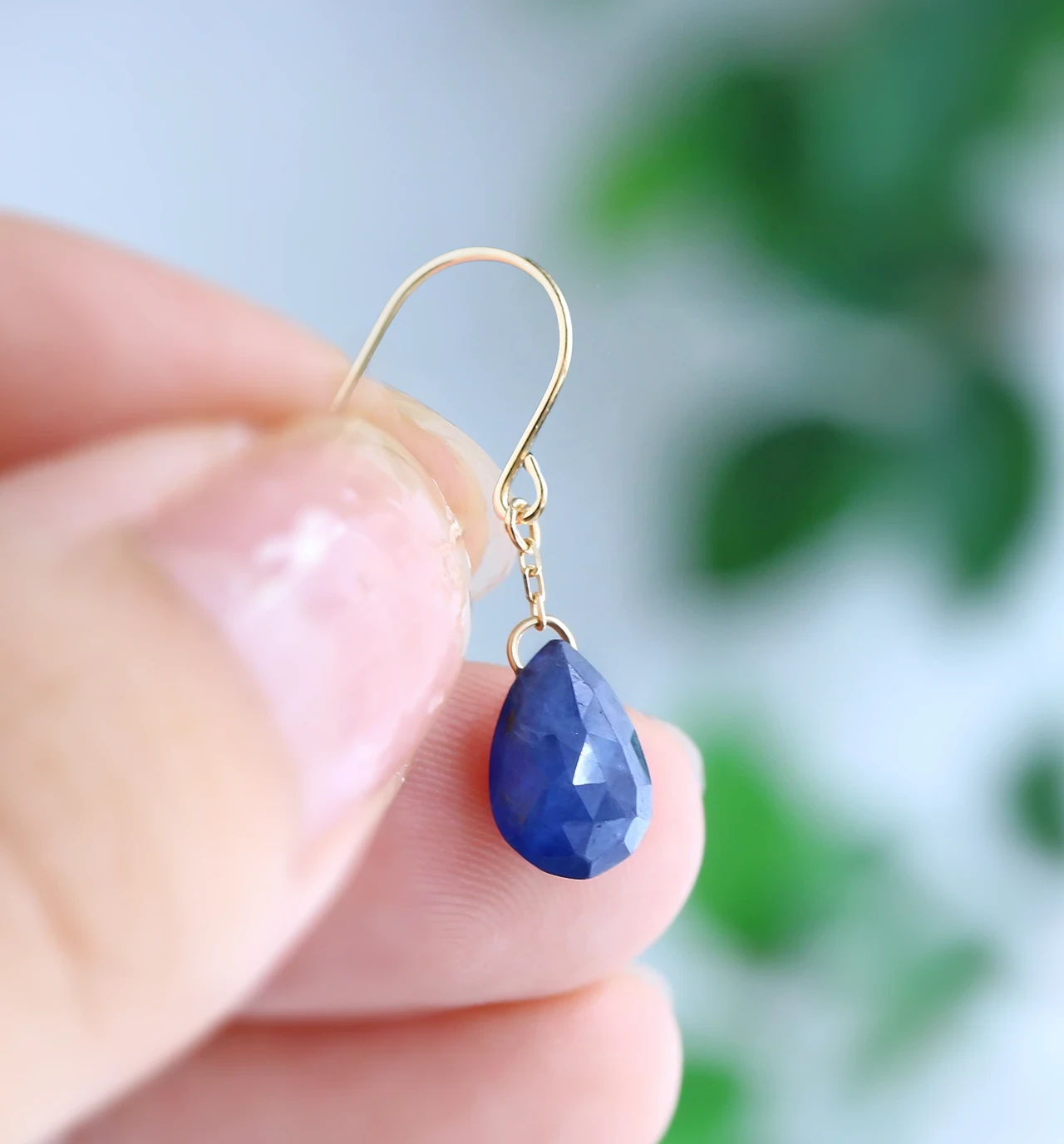 | サイズ | 【ピアス】サイズ:縦 約14mm×横 約10mm フックの太さ 0.5mm【石】サファイア(ペアシェイプ):約8mm〜8.5mm×約5.5mm〜6.5mm | ||
