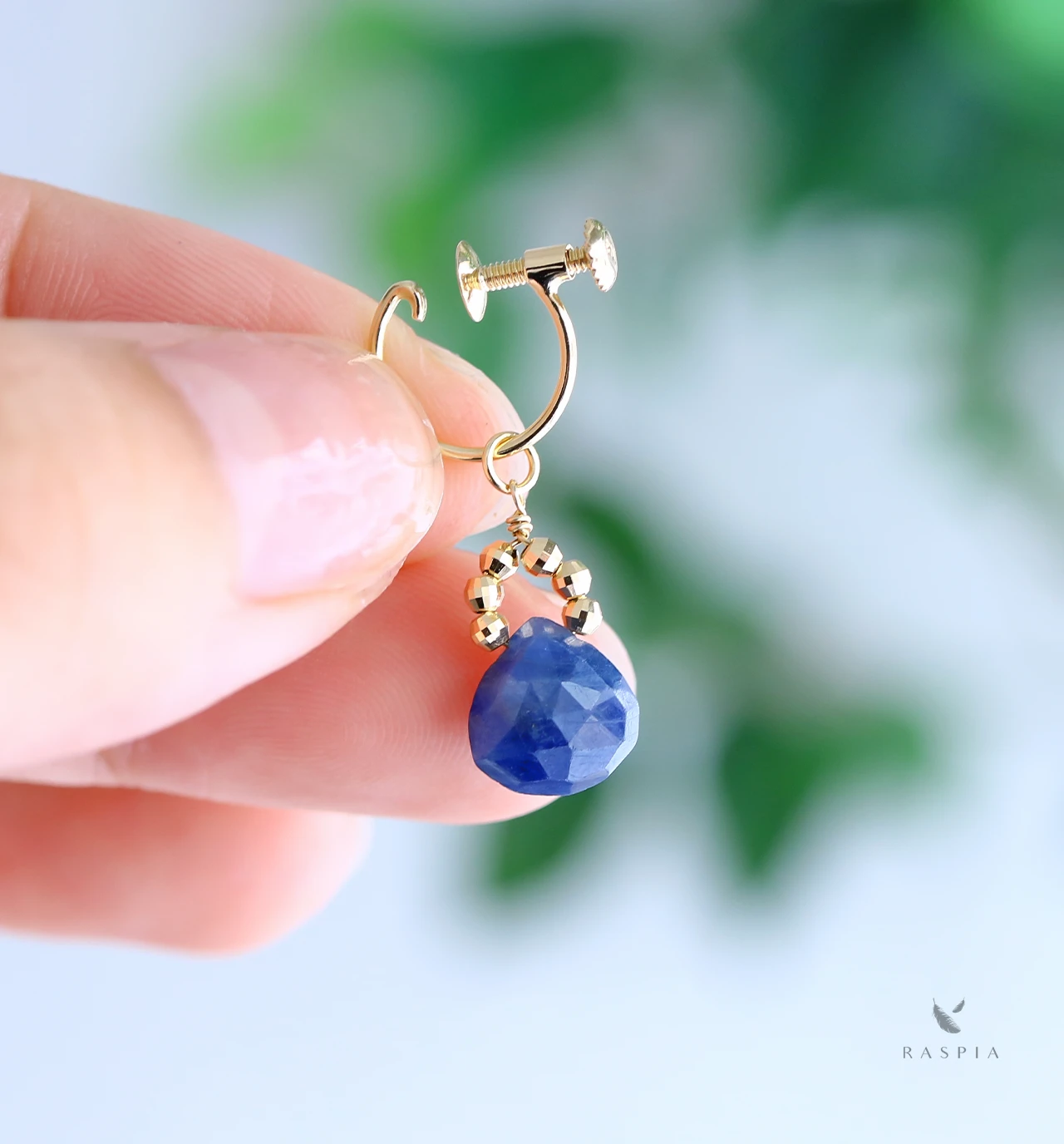 | サイズ | 【イヤリング】サイズ:直径10mm×太さ0.7mm【石】サファイア:約7.5mm〜8.5mm×約8mm〜9mm【チャーム丸カン内径】約2mm | ||