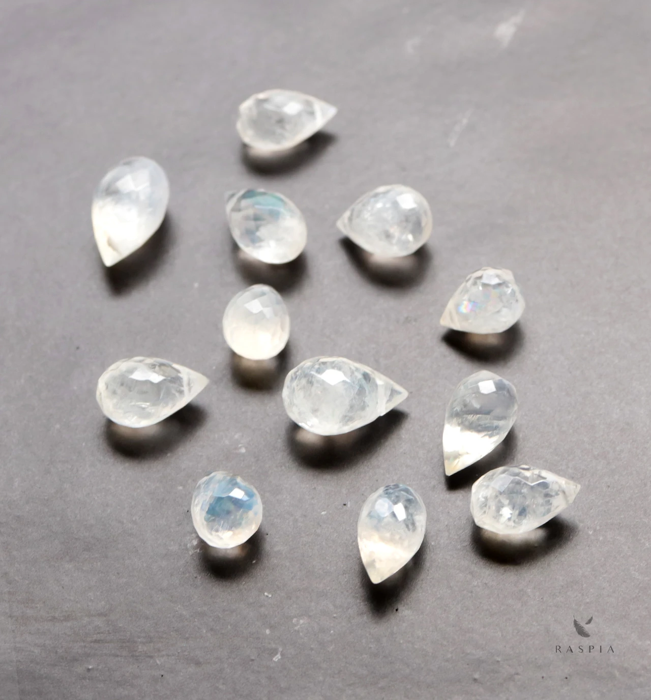 ブリオレットカットのコロンとしたフォルム。その中に石それぞれのクラックや内包物が複雑な乳白色を表現し、可愛らしくもどこか儚げな印象のあるアイテム。石の上質感を引き立たせるシンプルなデザインと、ムーンストーンのやさしい輝きが、いつものコーディネートを上品な印象に仕上げてくれます。