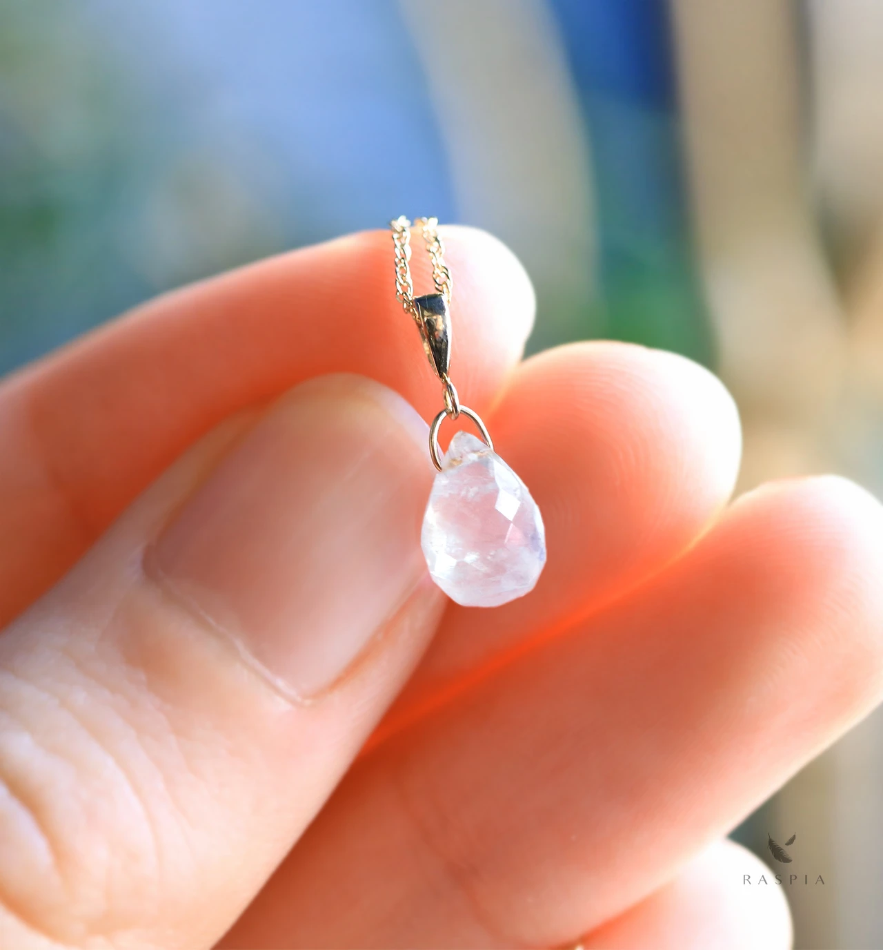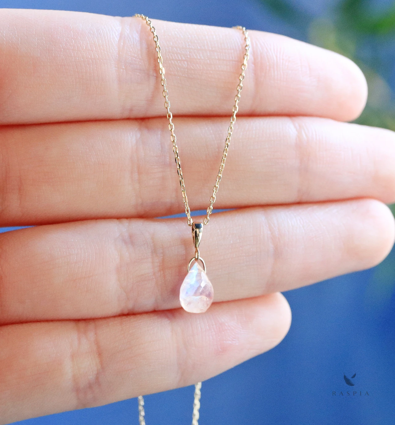 複雑な乳白色と透明感の中にゆらめくシラーが美しい、ムーンストーンのネックレスチャームです。