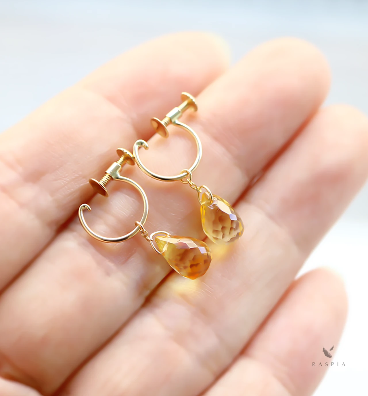| サイズ | 【イヤリング】サイズ:直径10mm×太さ0.7mm【石】シトリン:約6〜10mm×約6mm【チャーム丸カン内径】約1.4mm | ||