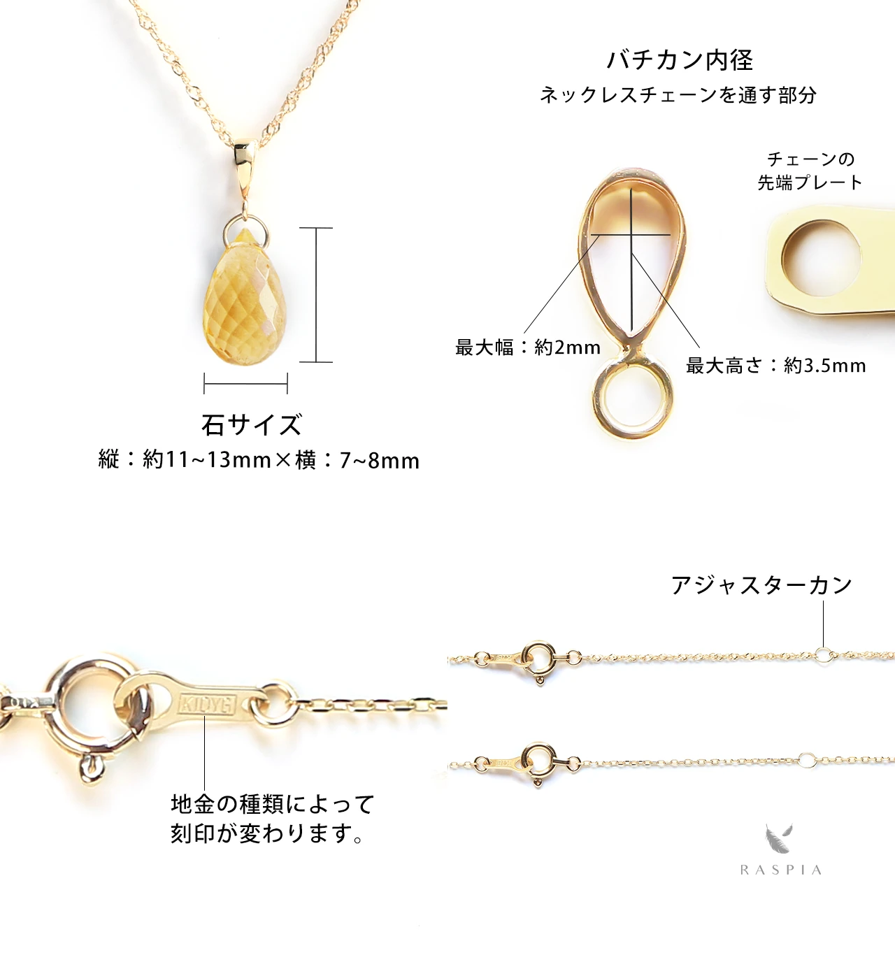 RASPIA(ラスピア)は、シンプルで大人可愛いデザインをイメージし、カラーストーン/天然石とK10(10金)/K18(18金)の本物のゴールド素材を使って手作りしています。