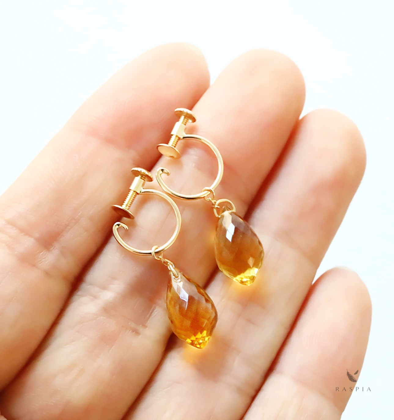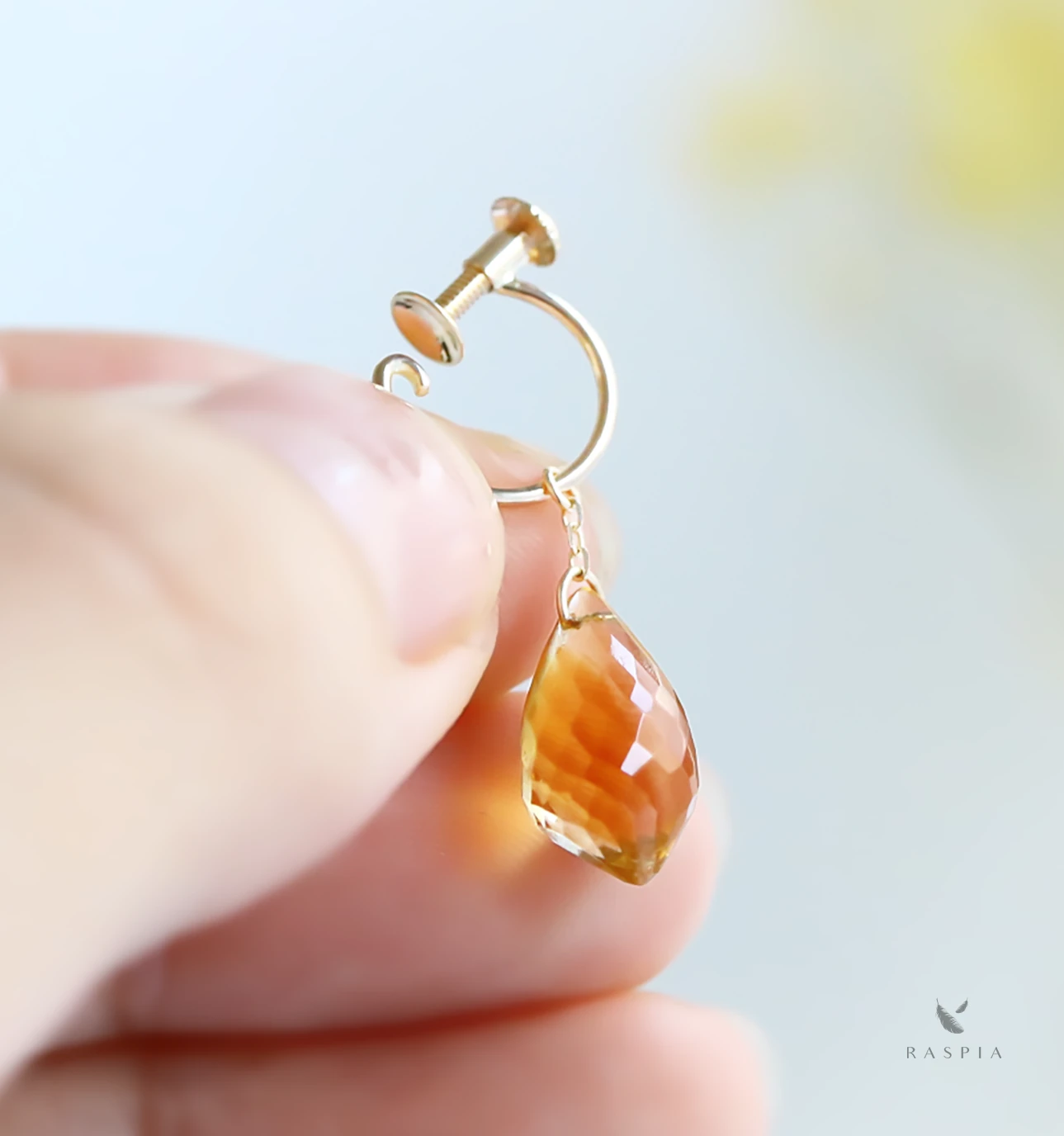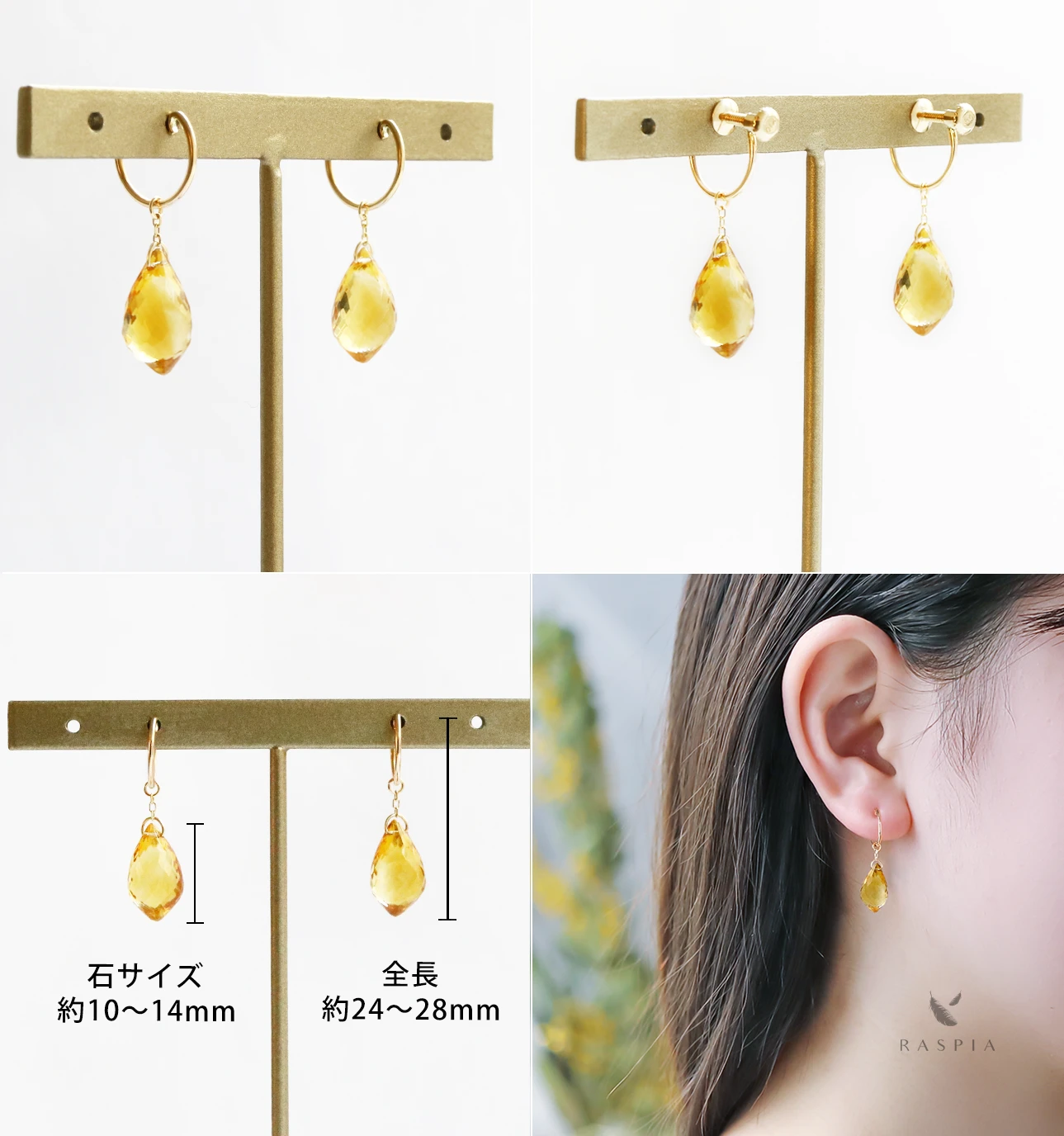 | サイズ | 【イヤリング】サイズ:直径10mm×太さ0.7mm【石】シトリン:約10〜14mm×約7〜8mm【チャーム丸カン内径】約1.4mm | ||