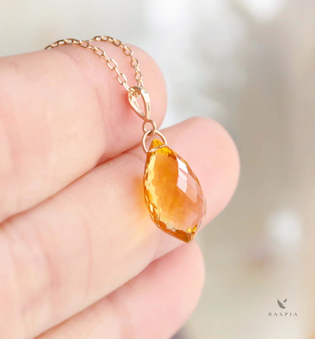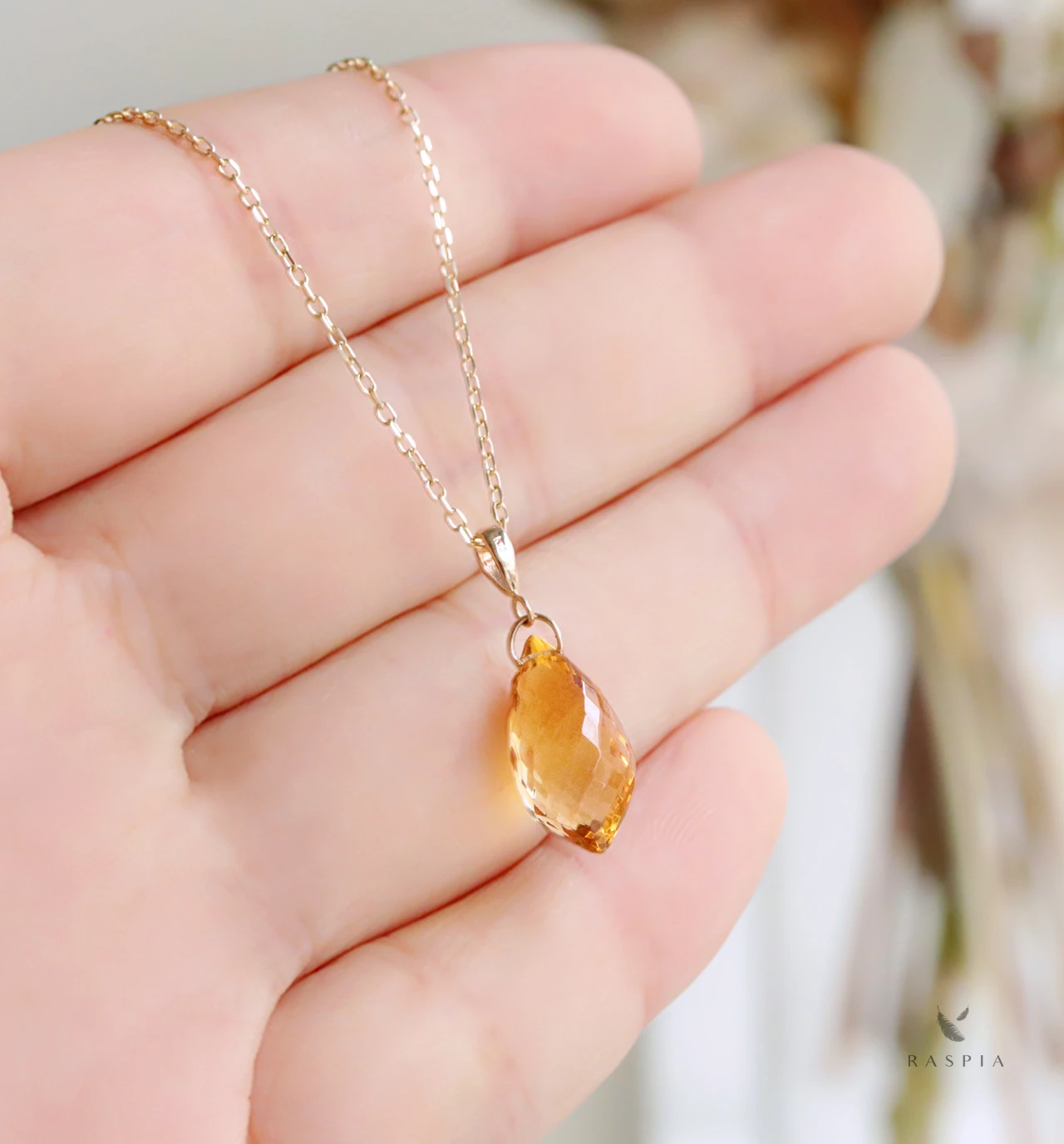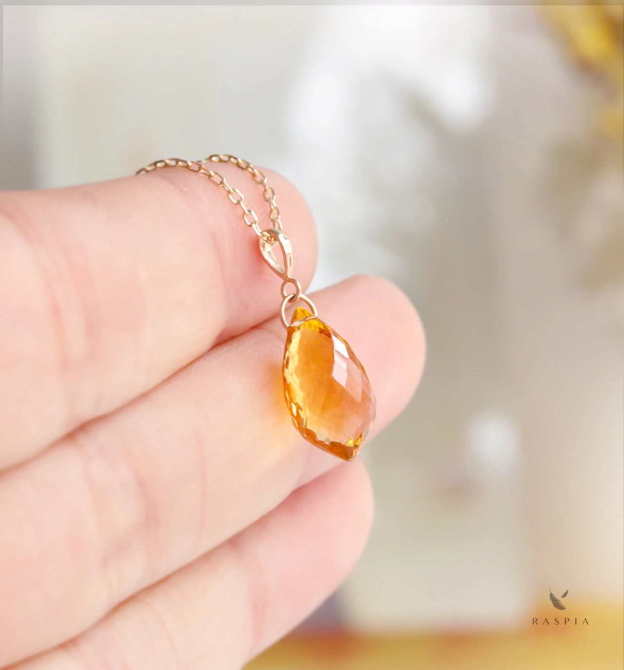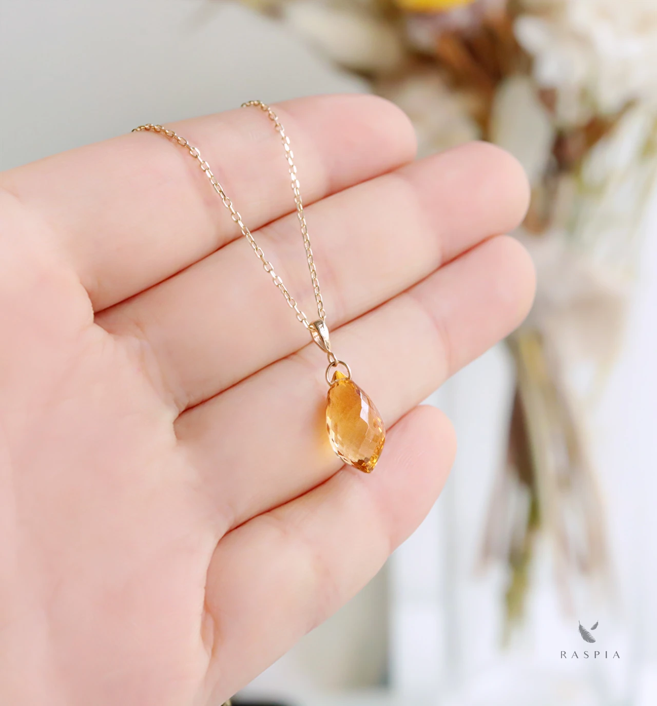 深みのあるオレンジイエローが印象的な、シトリンを使用したネックレスチャームです。シトリンは11月の誕生石です。