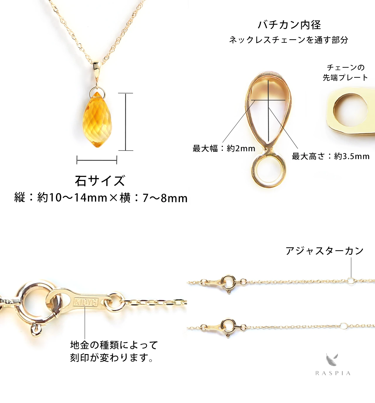 | 素材 | K10 YG / シトリン ※ネックレスチェーンのみK18に変更可能です。(チャーム部分の金具はK10のままになります。) | カテゴリ | |