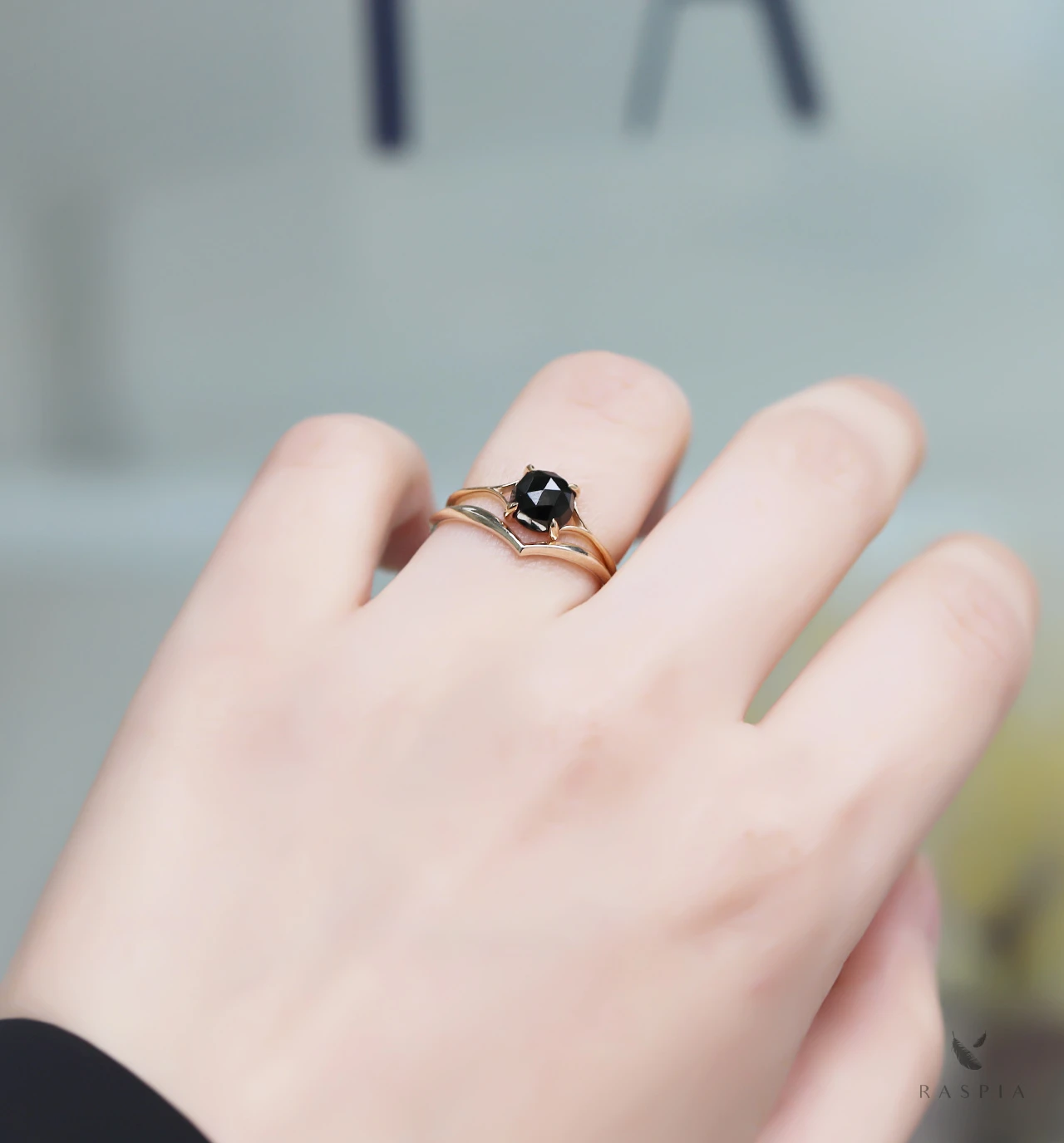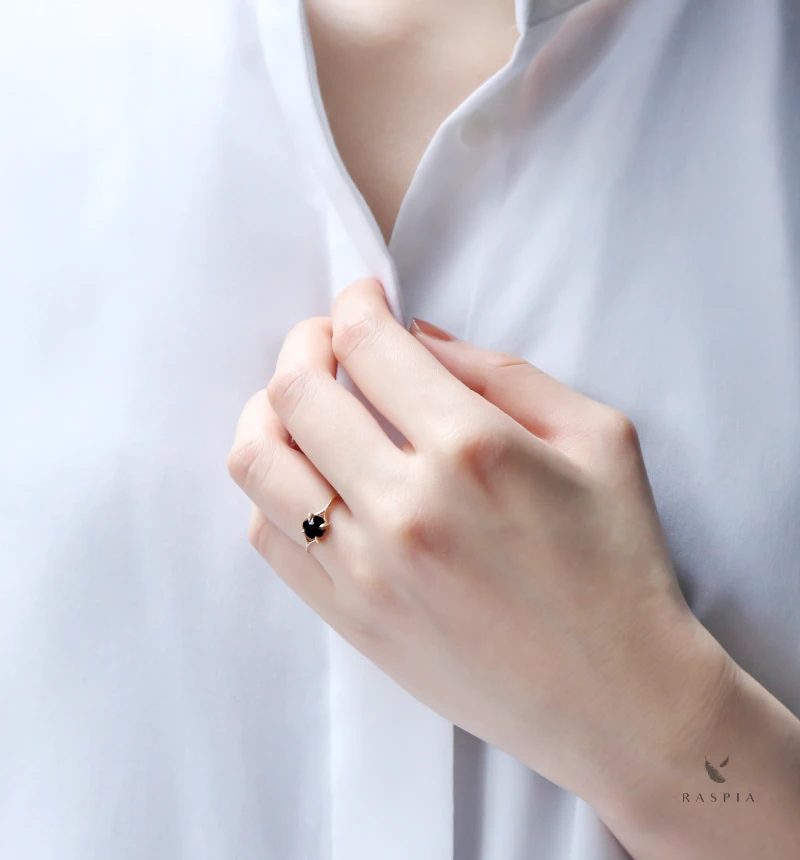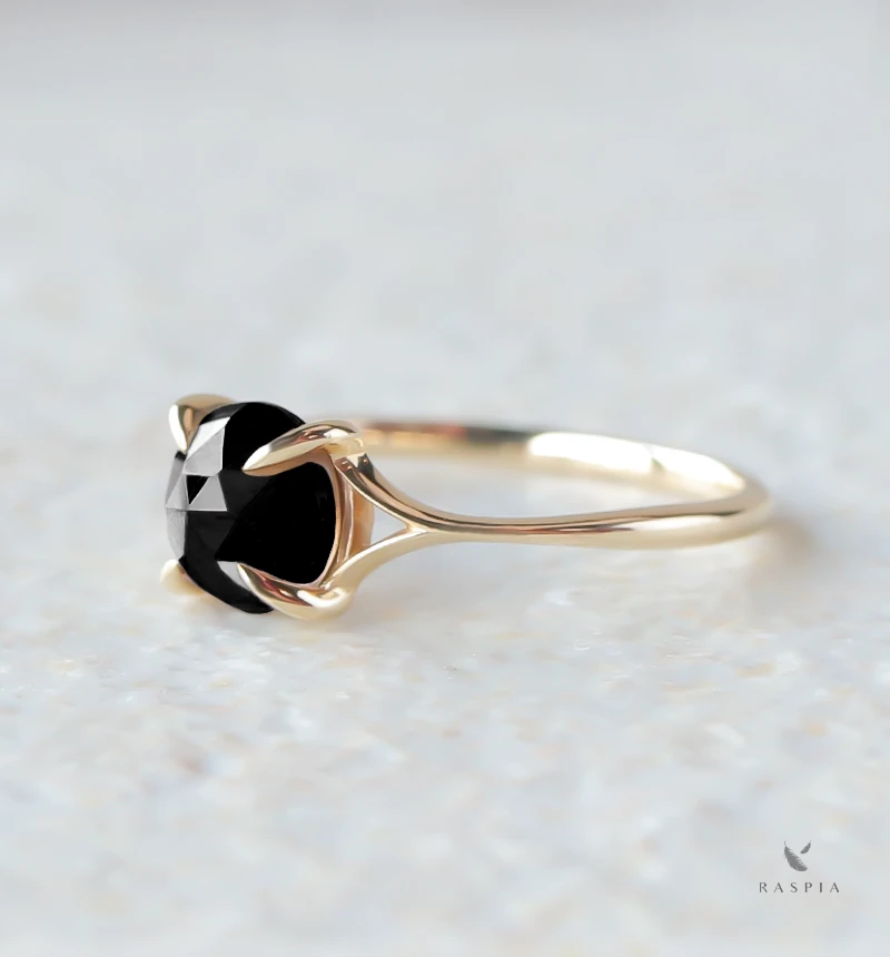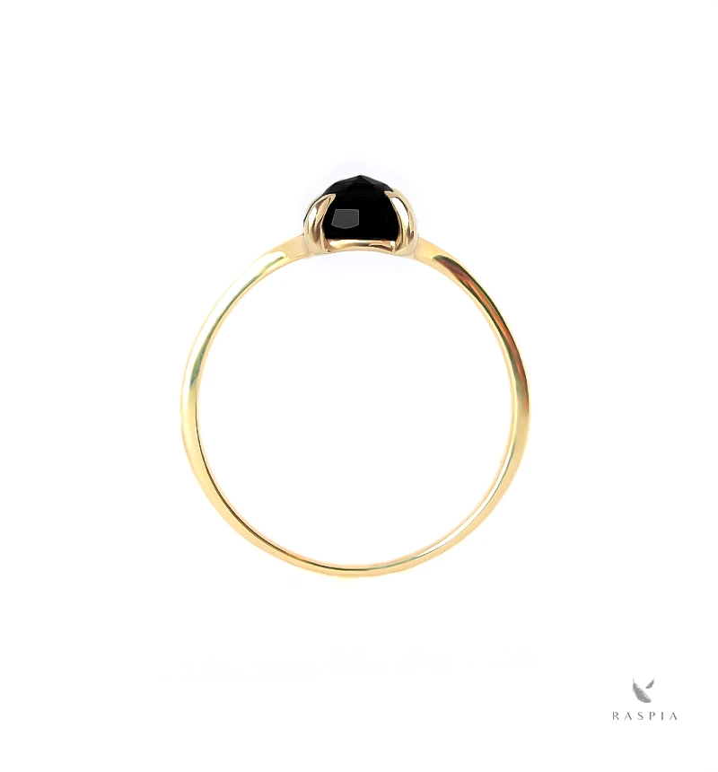 大人な印象のブラックスピネルを使用したK10リングです。ローズカットの表面に施された24面のカット面が光を反射し、キラキラと美しく輝きます。スピネルは8月の誕生石です。