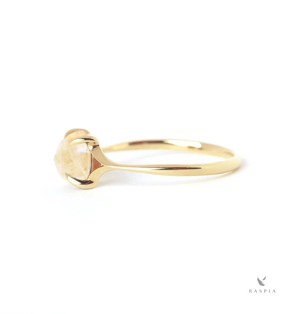 内包する黄金色のルチルはダイヤモンド以上の屈折率を持ち、とても強く輝きます。絹糸のような黄金のルチルと、クォーツの瑞々しい輝きとが相まって他の宝石にはない美しさを湛えます。