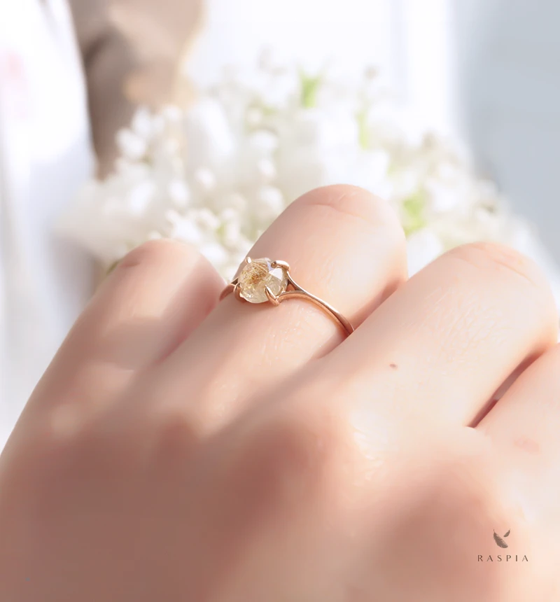内包するルチルの太さや向き、色味の濃さは自然が作り出す石の個性。自然由来の石の美しさを存分に楽しめる宝石です。