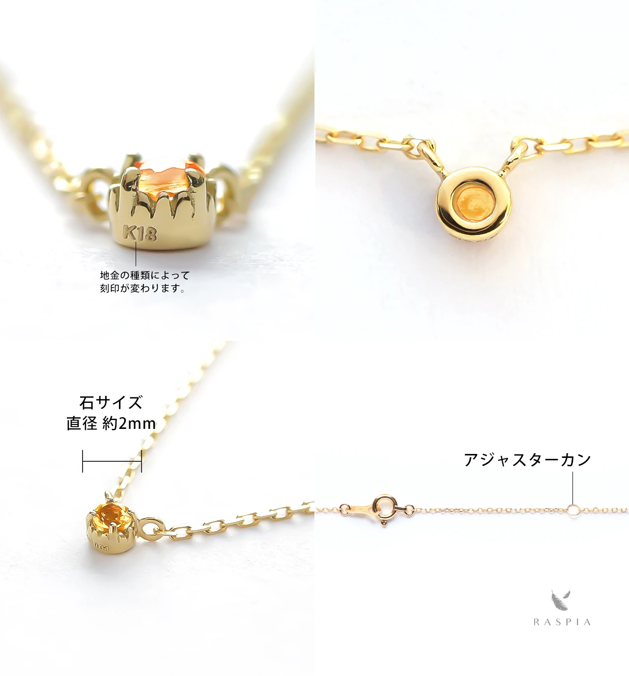 深みのあるオレンジイエローが印象的な、シトリンを使用したシンプルな一粒ネックレスです。シトリンは肌なじみがよく、季節を問わずどんな洋服にも合わせやすい宝石です。シトリンは11月の誕生石です。