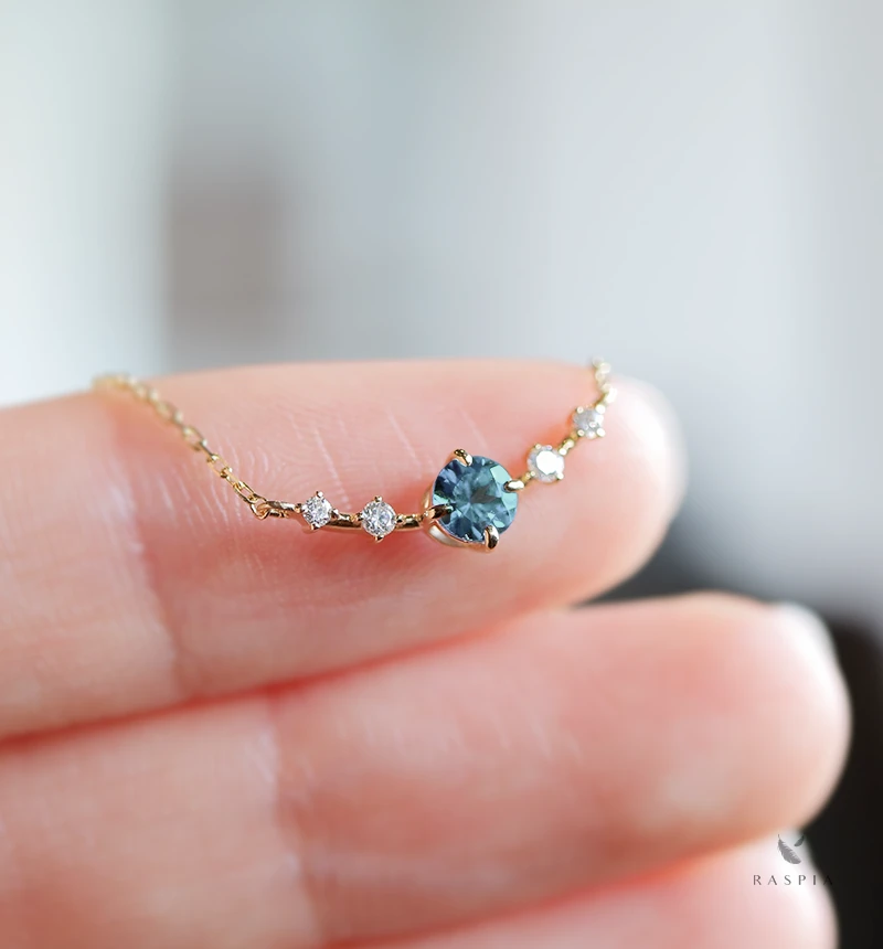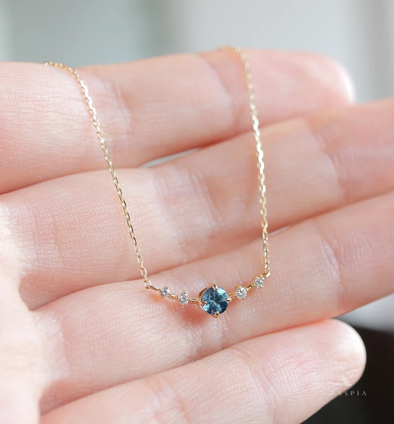 石が主役になる、そして鮮やかなカラーストーンの美しいきらめきが楽しめるネックレスになるように、細部までこだわり作り上げています。小さく繊細でありながら胸元で確かな存在感を発揮します。