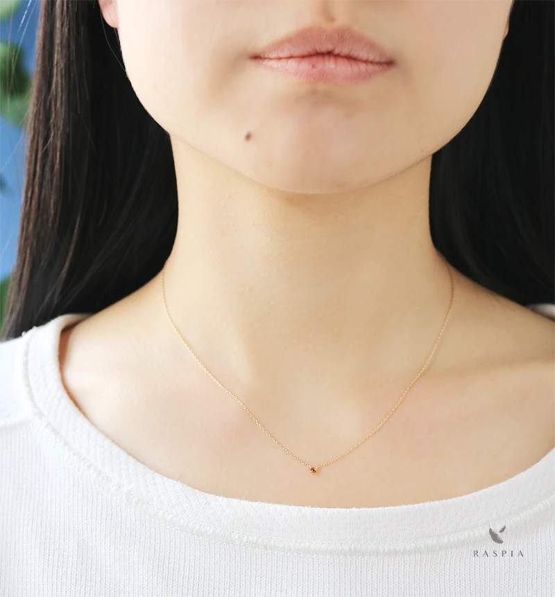あずきチェーンにスペサルティンガーネット1石の、シンプルで飽きのこないネックレスです。