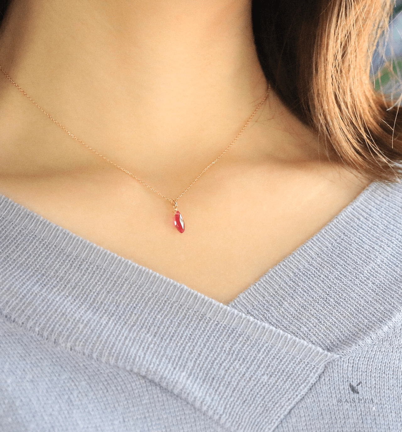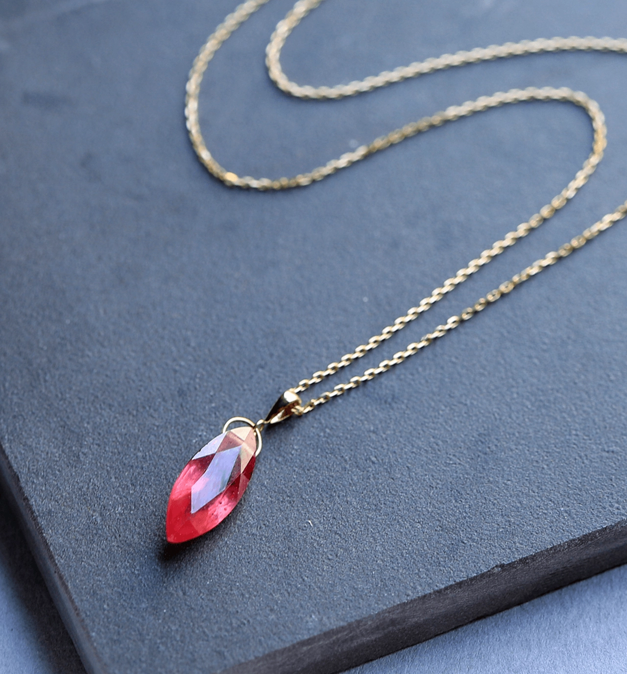 カット面の輝きが美しく、胸元で揺れるたびに鮮烈なきらめきを放ちます。