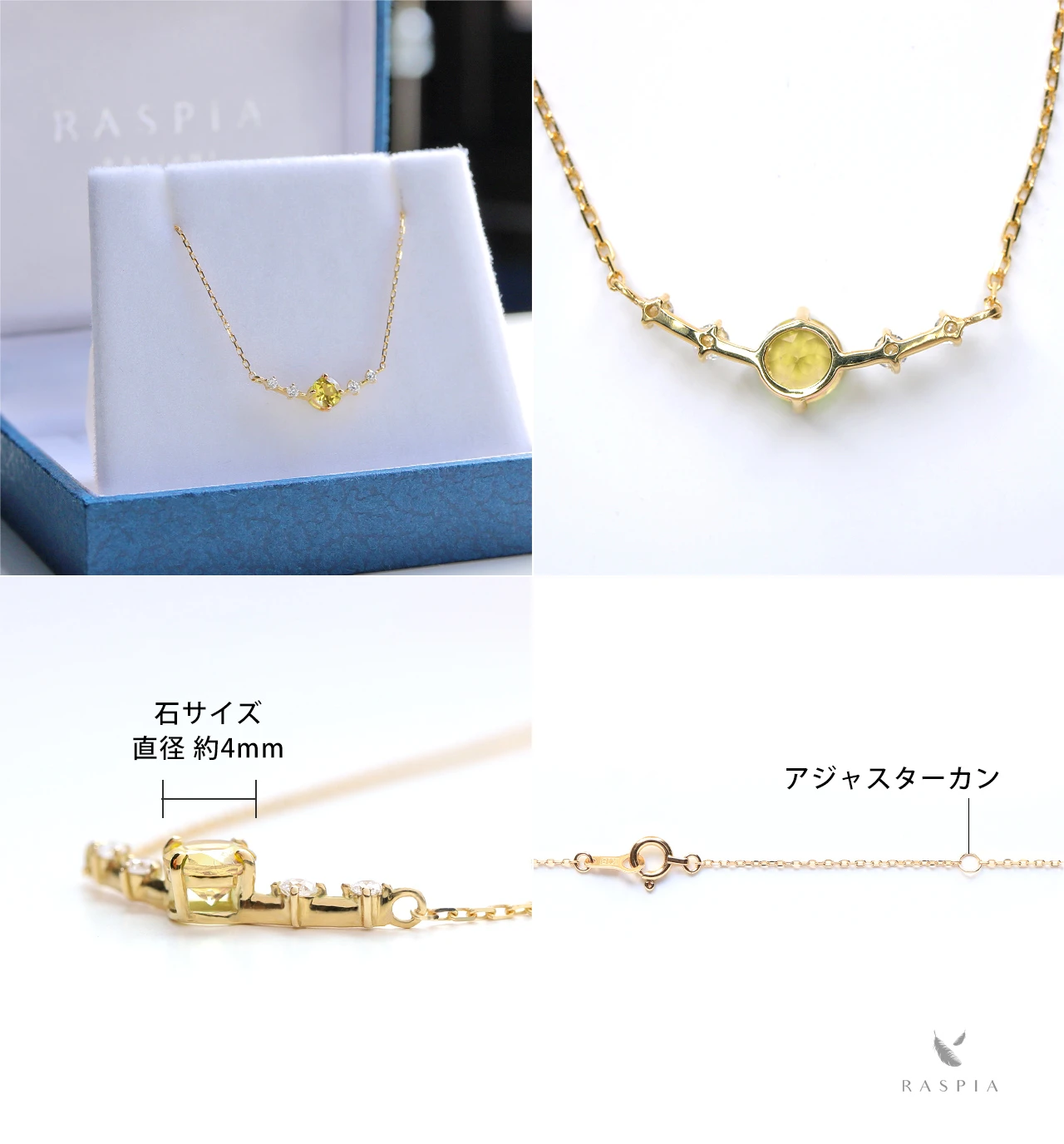 ネックレストップの石留めは、極限まで小さくさり気ない作りにこだわりました。小さいながらもしっかりと石を支え、宝石の存在感を引き立てます。 金具はすべて18金で、職人が細部まで丁寧に磨きあげました。鮮やかなイエローゴールドの輝きを長くお楽しみいただけます。 製作では、職人によって細部の仕上がりに気を配り、最後は丁寧に磨きあげます。デザイナー、宝石バイヤーを含めた厳しい品質チェックを通ったネックレスは鮮やかな輝きを長くお楽しみいただけます。