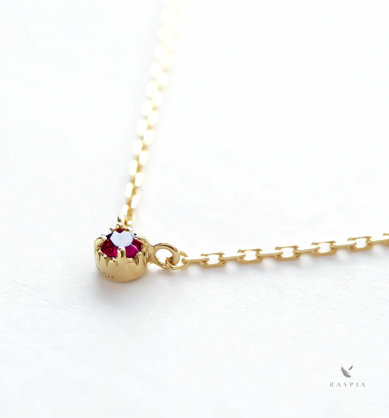 あずきチェーンにレッドスピネル1石の、シンプルで飽きのこないネックレスです。 素材は全てイエローゴールドを使用している為、高級感がありつつ、チェーンは細くトップも小ぶりで華奢なので、ジュエリーが苦手な方でも着用しやすいデザインです。