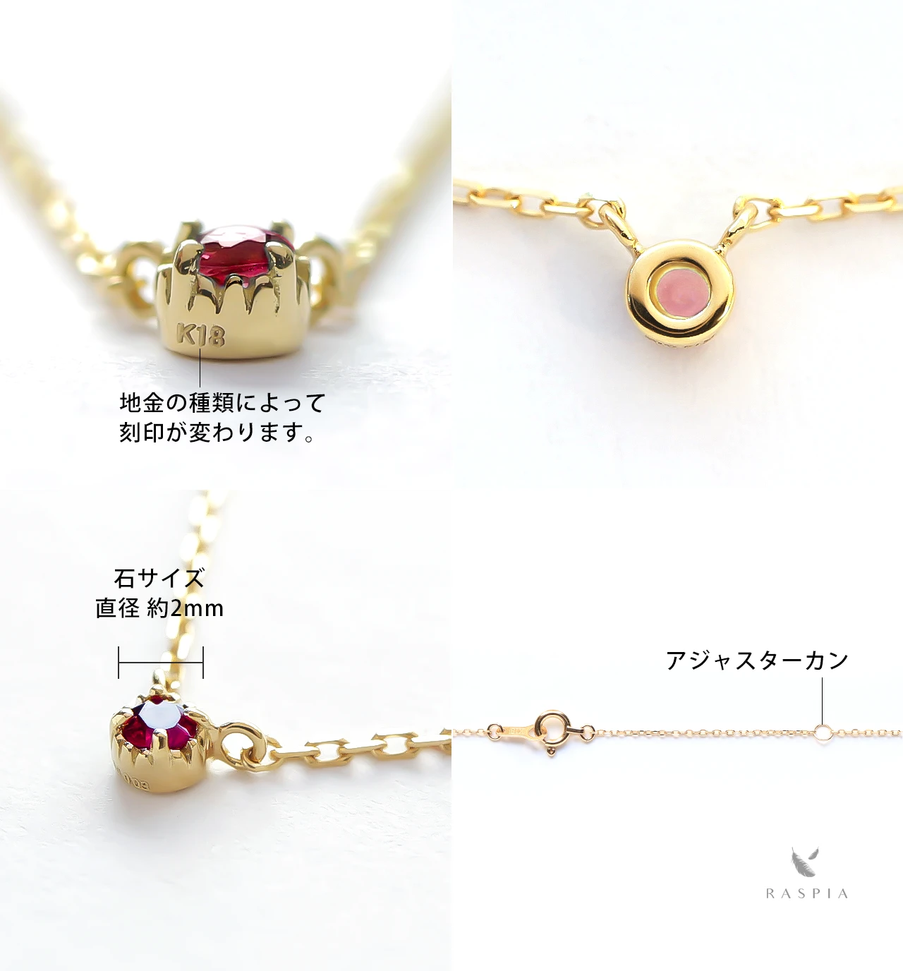 RASPIA(ラスピア)は、シンプルで大人可愛いデザインをイメージし、カラーストーン/天然石とK10(10金)/K18(18金)の本物のゴールド素材を使って手作りしています。