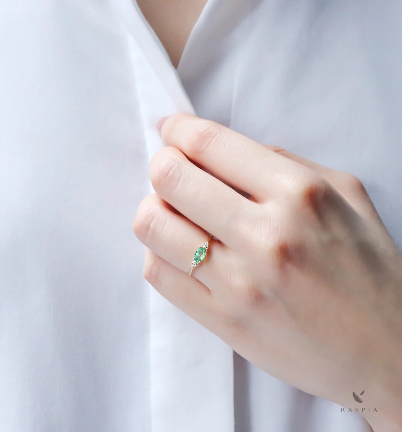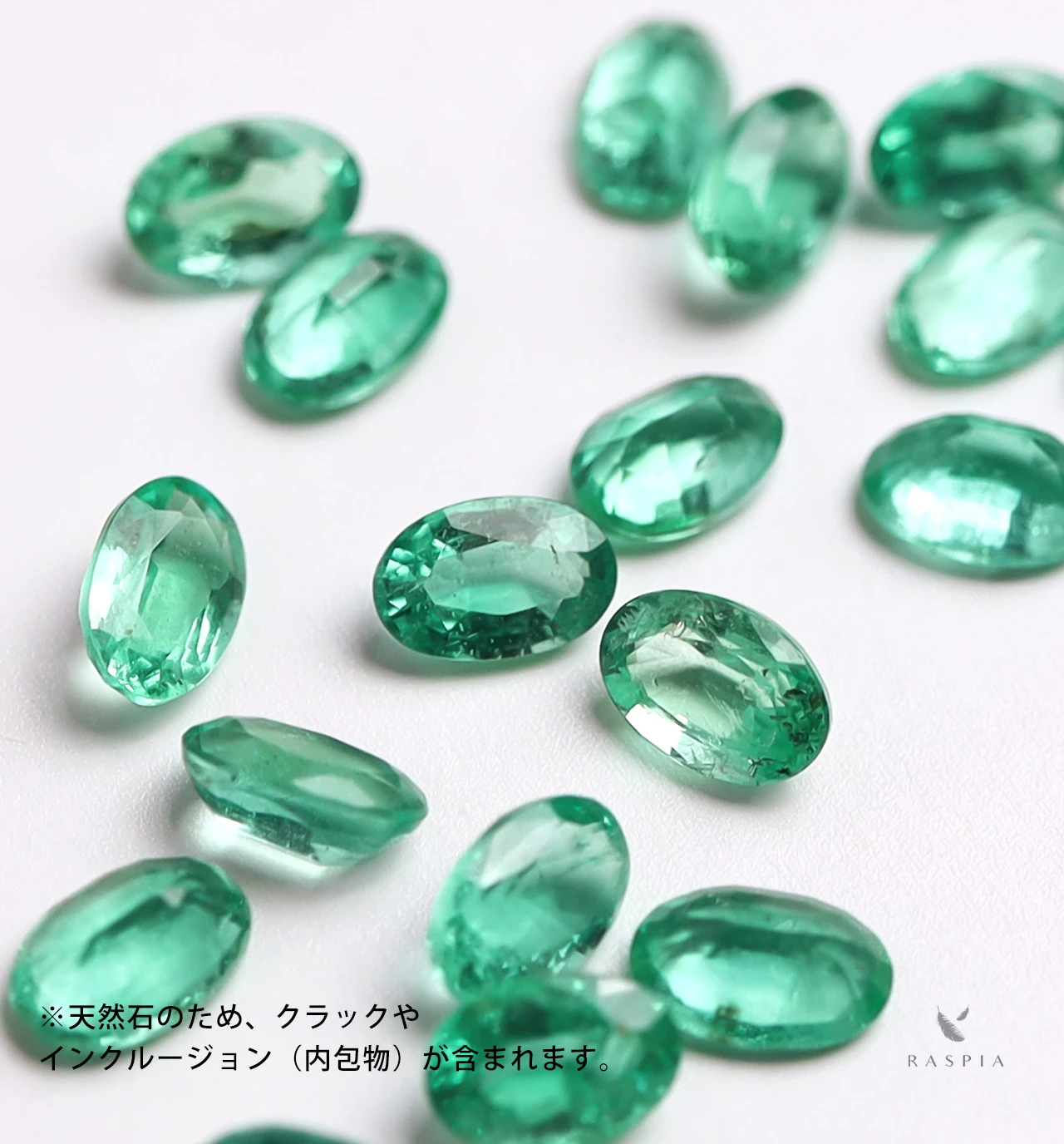 | 石 | 【個数】 ・エメラルド × 1石(ザンビア産 含浸処理) ・ダイヤモンド × 6石(SI~VSクラス相当) 【サイズ】 ・エメラルド:約 4mm × 6mm × 1石 ・ダイヤモンド:直径 約 1.3mm × 6石 【カラット】 ・エメラルド:約 0.406ct × 1石 ・ダイヤモンド:0.01ct × 6石 |