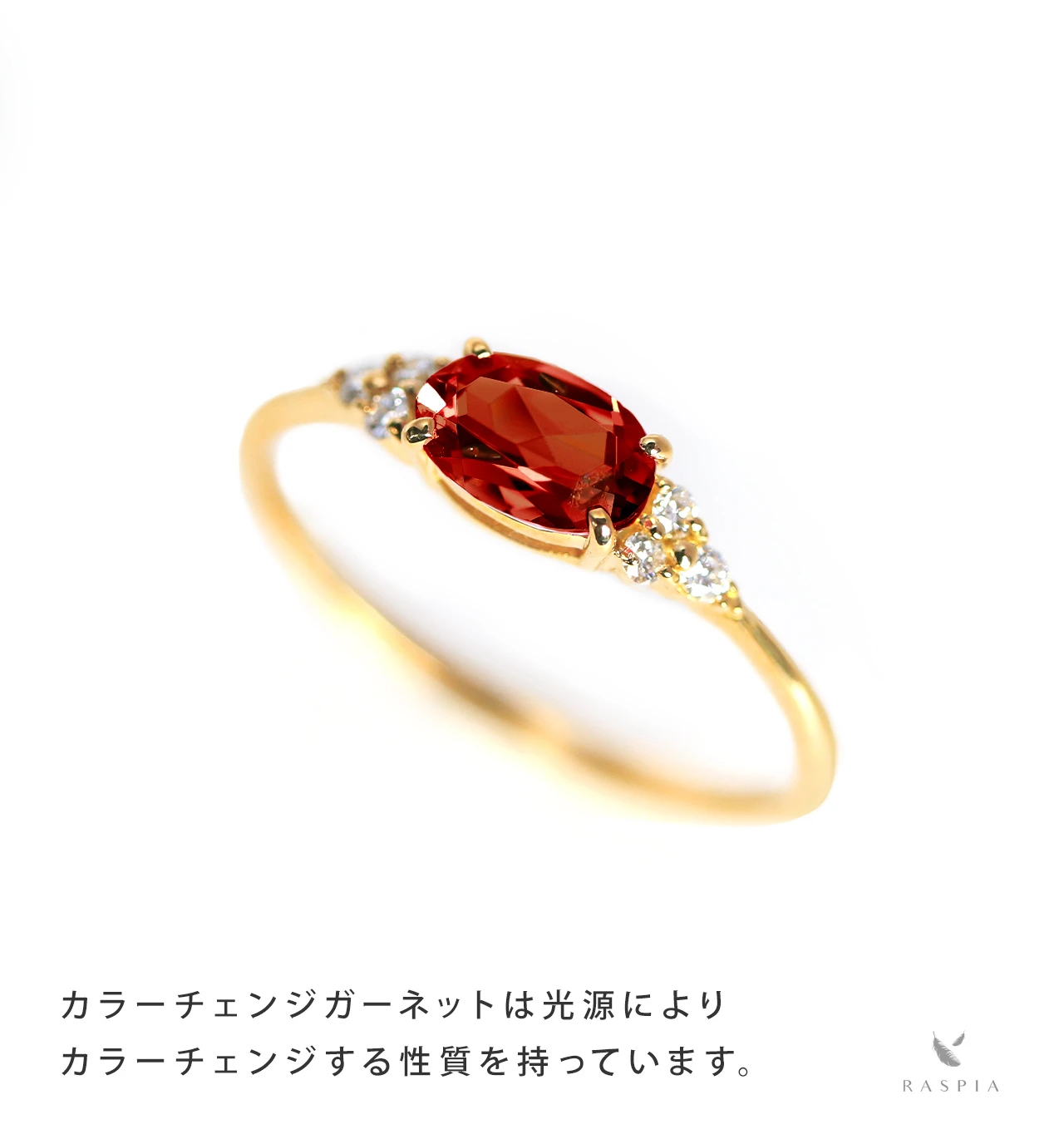 美しい色合いとメレダイヤの華やかさが調和するアイテムです。カラーチェンジガーネットは1月の誕生石です。
