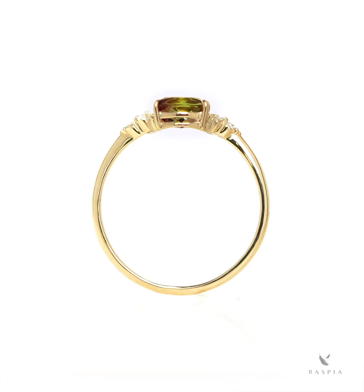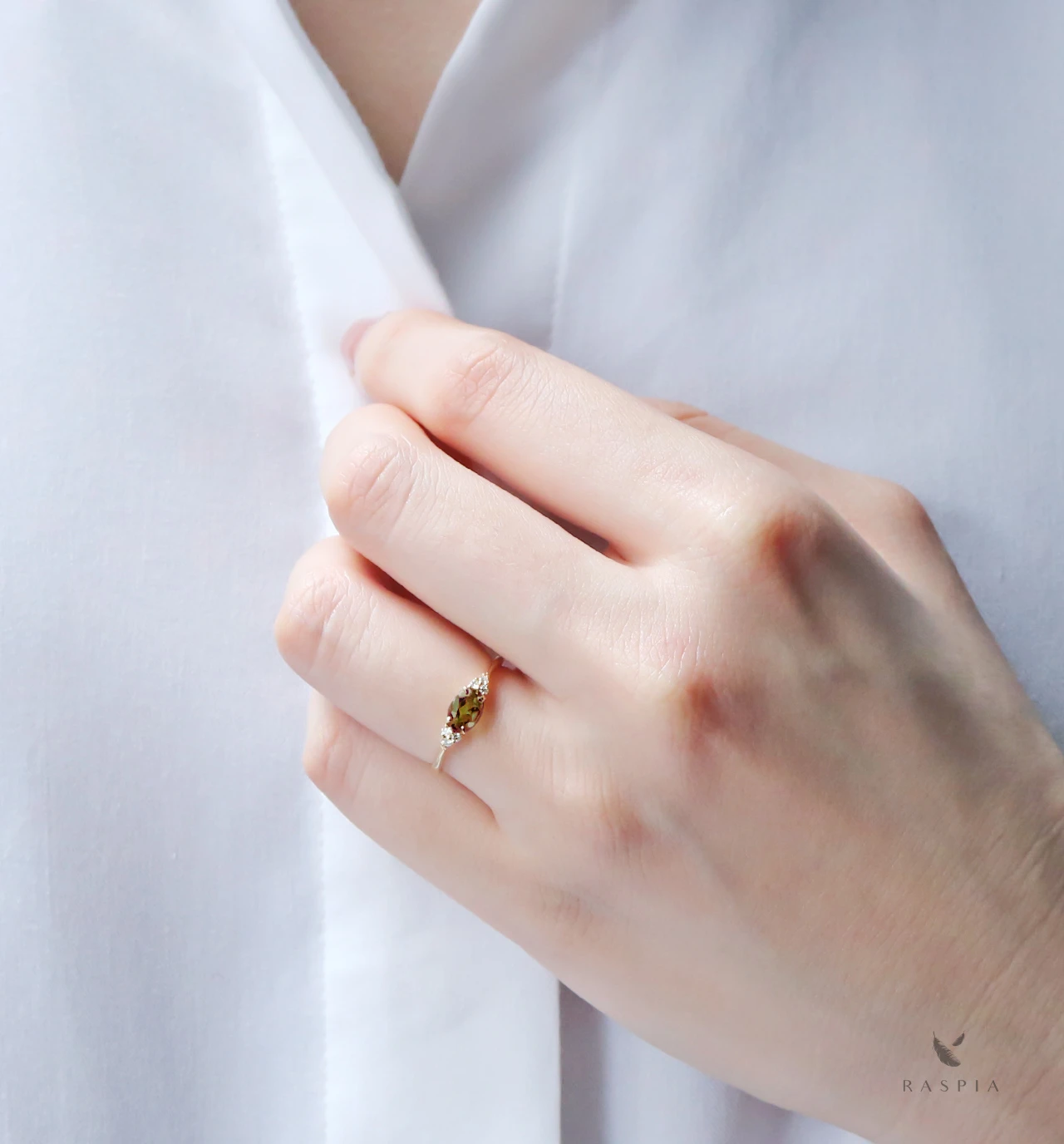 石が主役になる、そして鮮やかなカラーストーンの美しいきらめきが楽しめるリングになるように、細部までこだわり作り上げています。メイン石の左右に配置されたダイヤモンドがさらに気品とジュエリーの魅力を引き立たせます。指輪の重ね付けをしたり、Elloシリーズのネックレスと合わせたりと様々なコーディネートでお楽しみください。