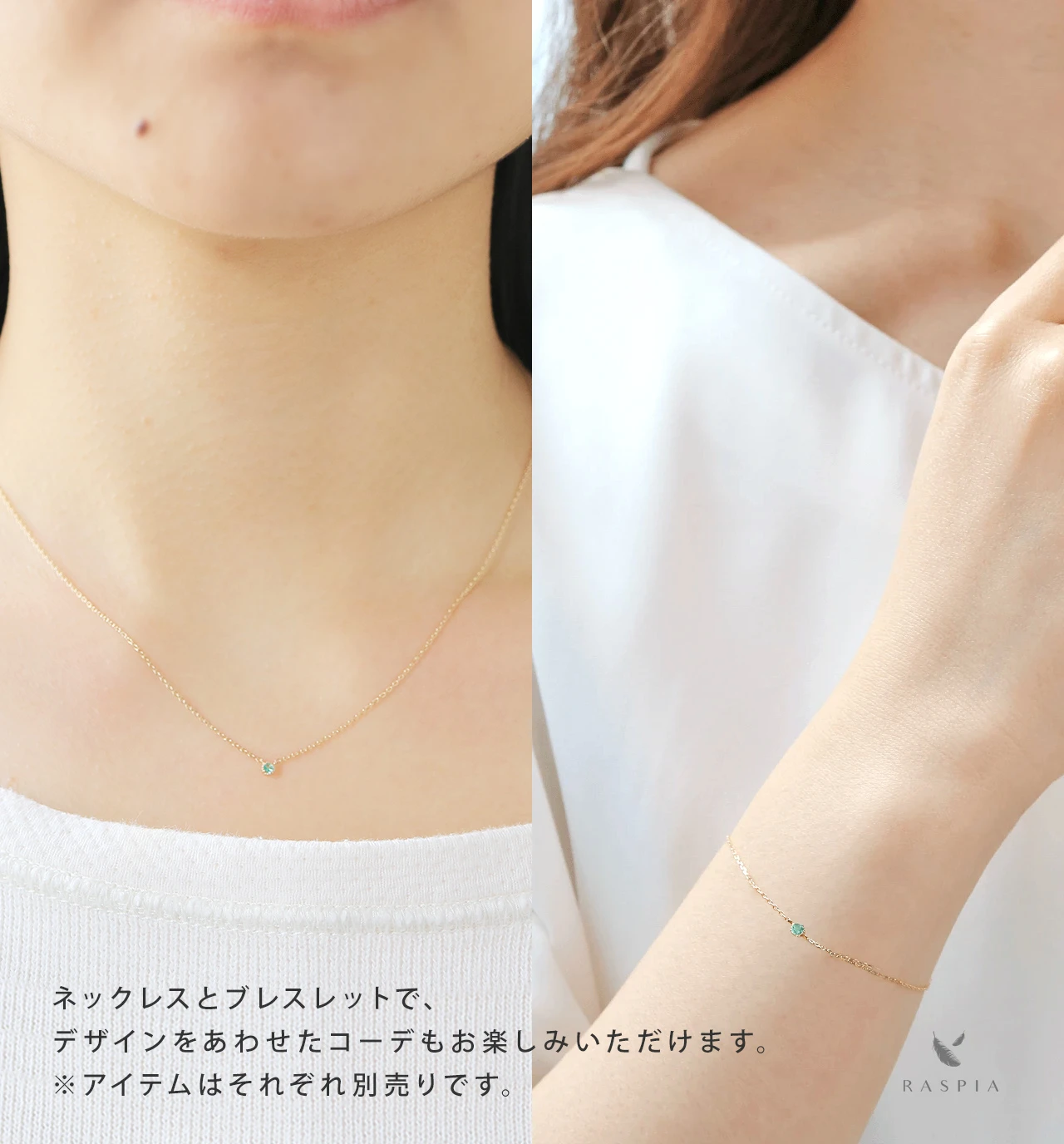 RASPIA(ラスピア)は、シンプルで大人可愛いデザインをイメージし、カラーストーン/天然石とK10(10金)/K18(18金)の本物のゴールド素材を使って手作りしています。