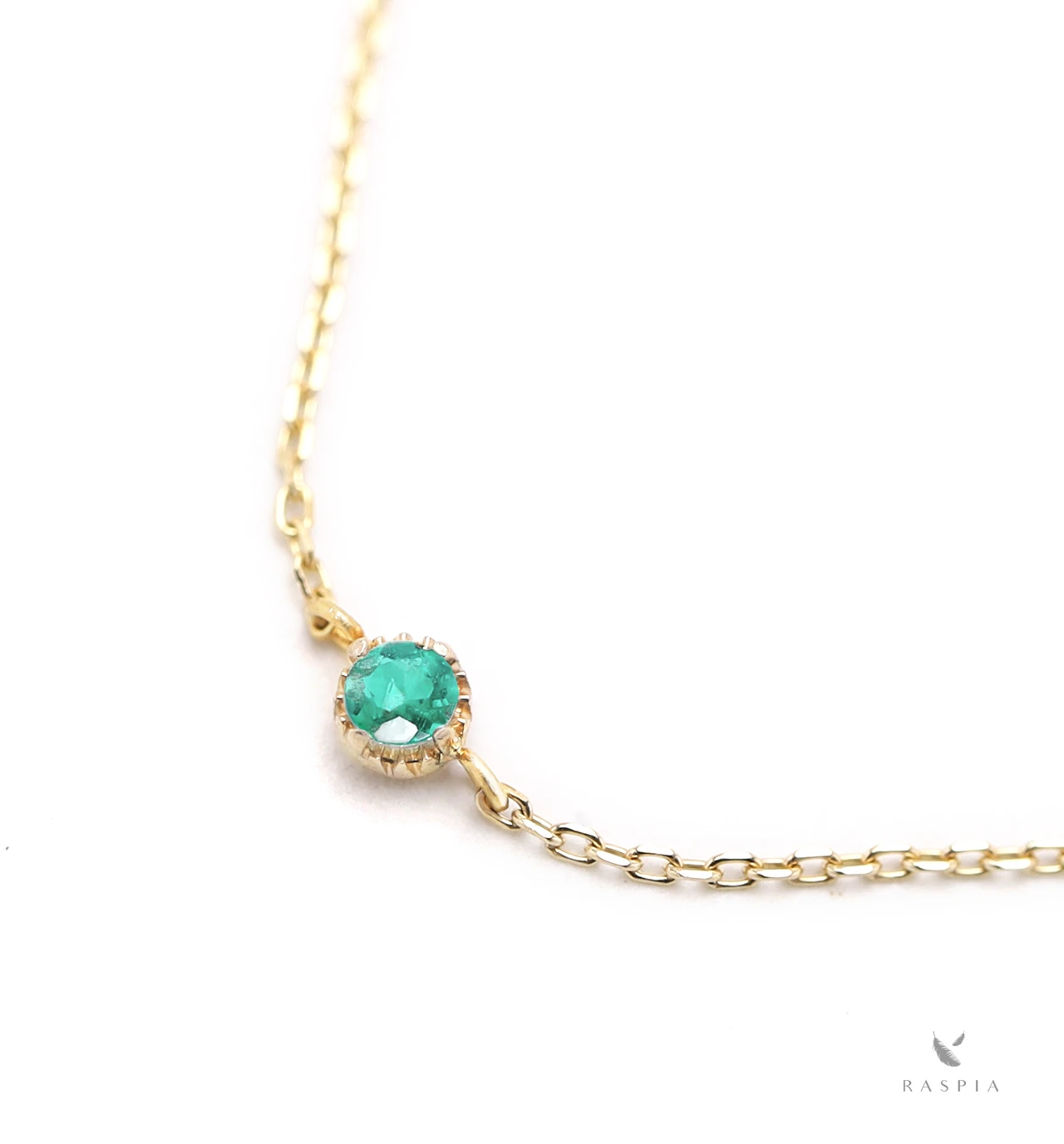 豊かなグリーンカラーが美しいエメラルドを使用した、シンプルな一粒ブレスレットです。紀元前のエジプトではクレオパトラが装飾品に愛用していたことでも有名なエメラルド。シンプルでさりげないデザインのブレスレットに仕立てました。