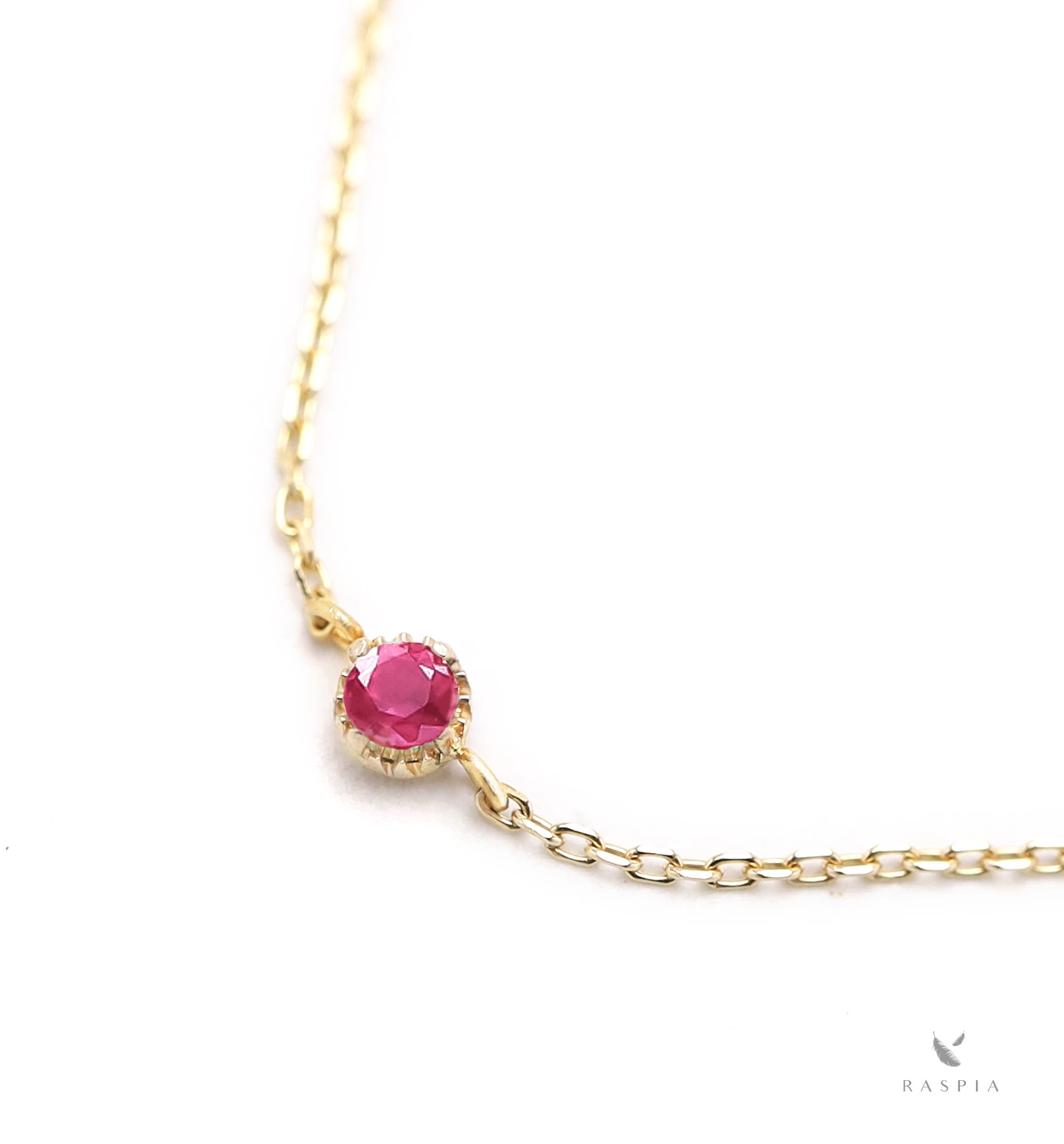 燃え盛る炎のように情熱的に輝くルビーを使用した、シンプルな一粒ブレスレットです。世界の3大宝石に数えられるルビーは、その美しさと希少性から「宝石の女王」とも呼ばれています。