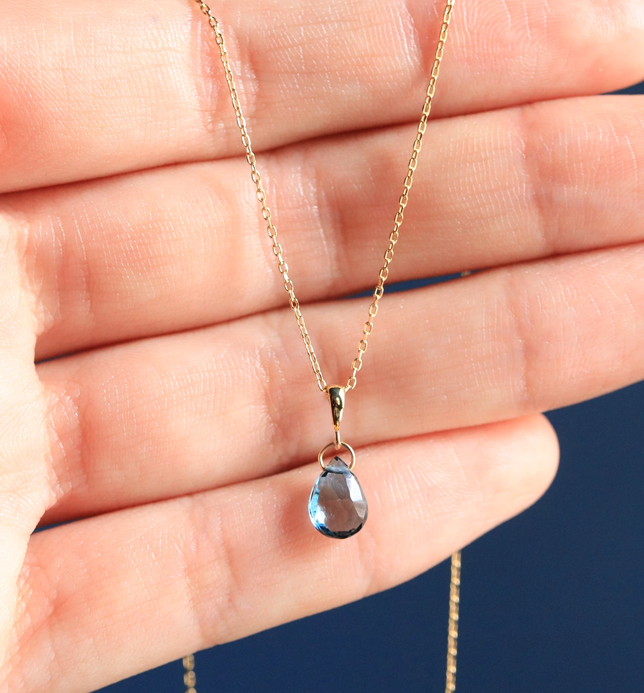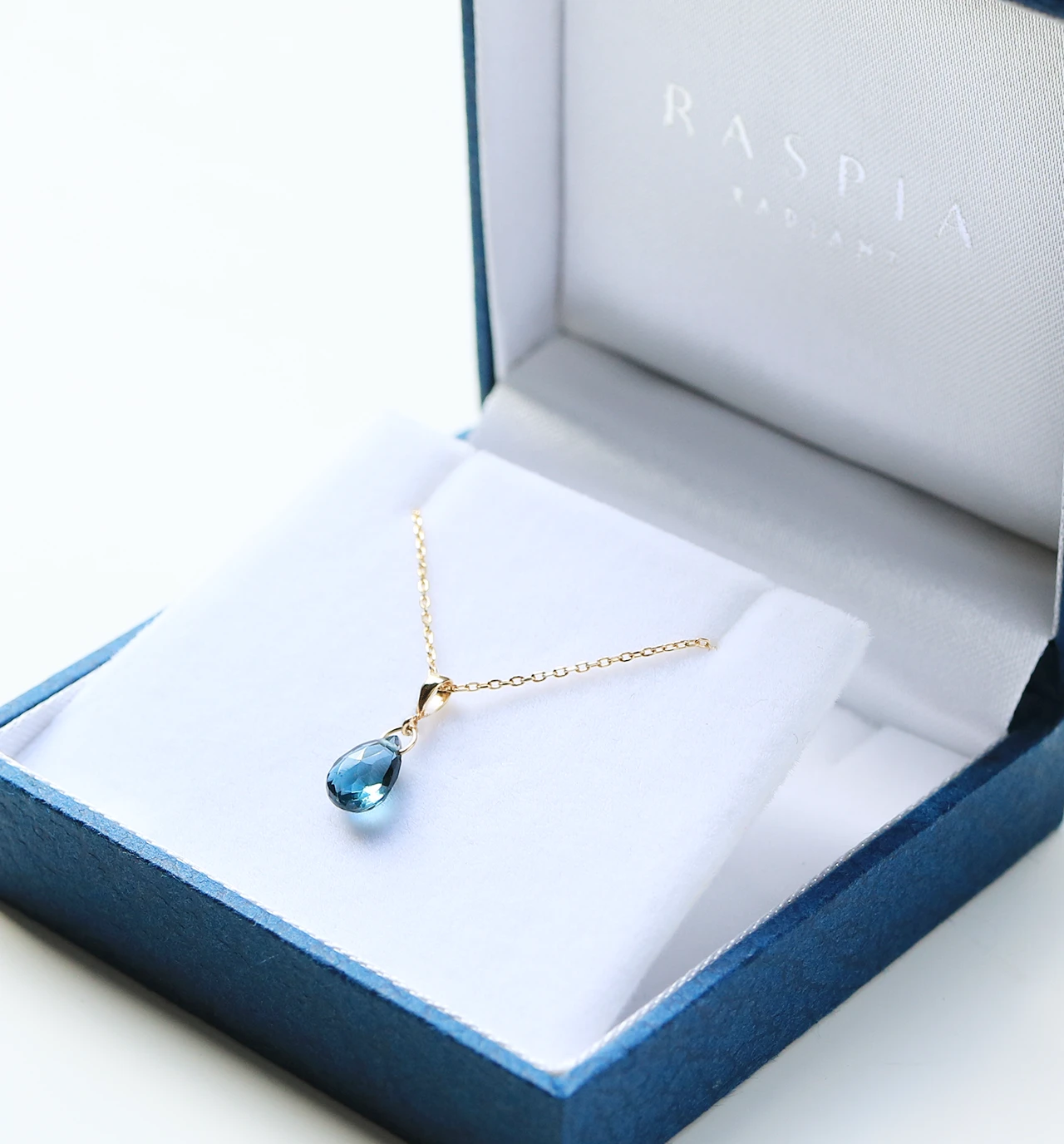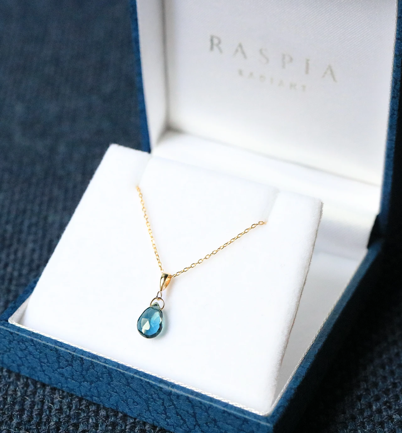海を閉じ込めたような色合いのロンドンブルートパーズを使用したネックレス。