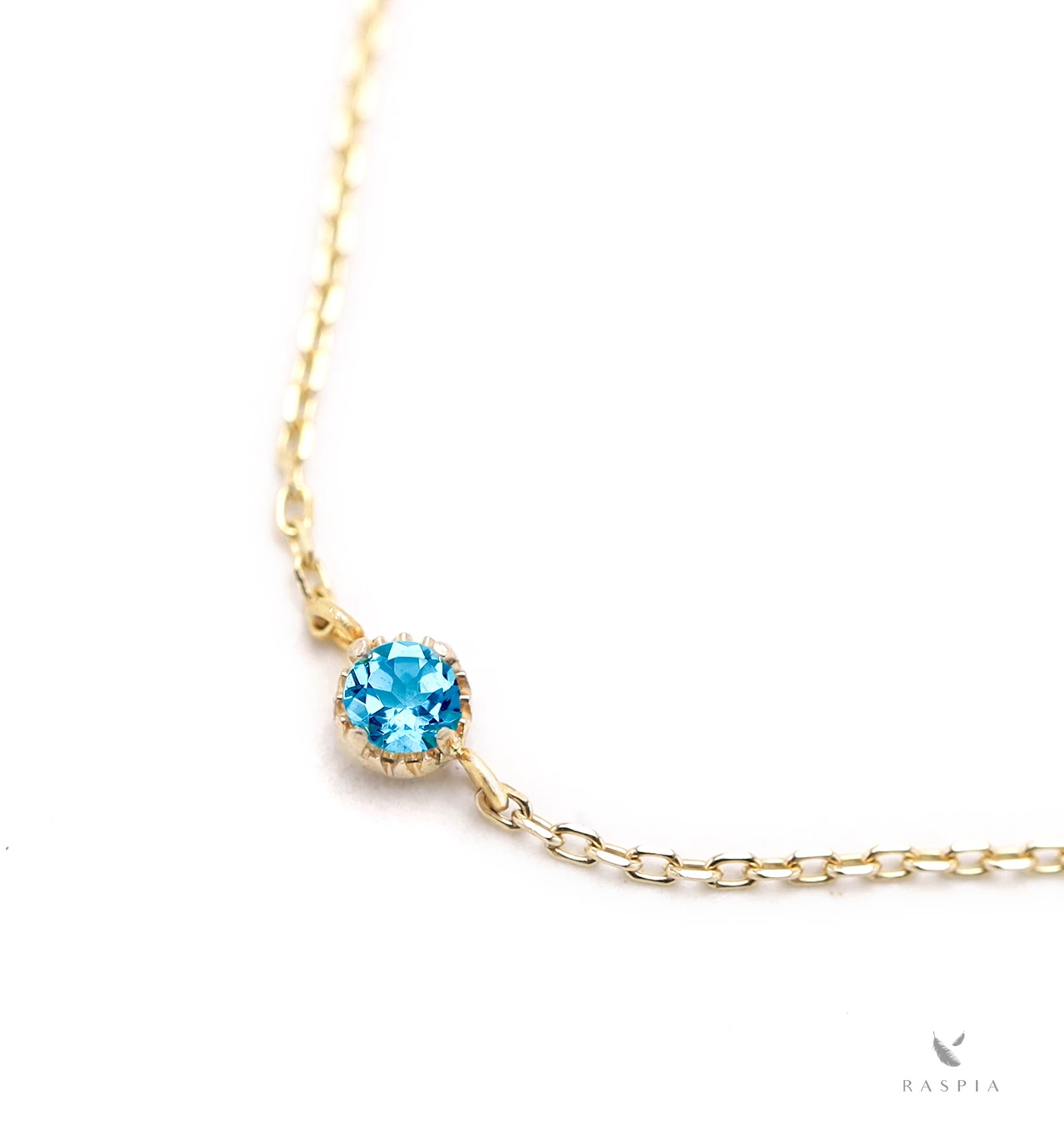 涼やかなブルーの発色と煌きが美しい、スイスブルートパーズを使用したシンプルな一粒ブレスレットです。スイスブルートパーズは11月の誕生石です。