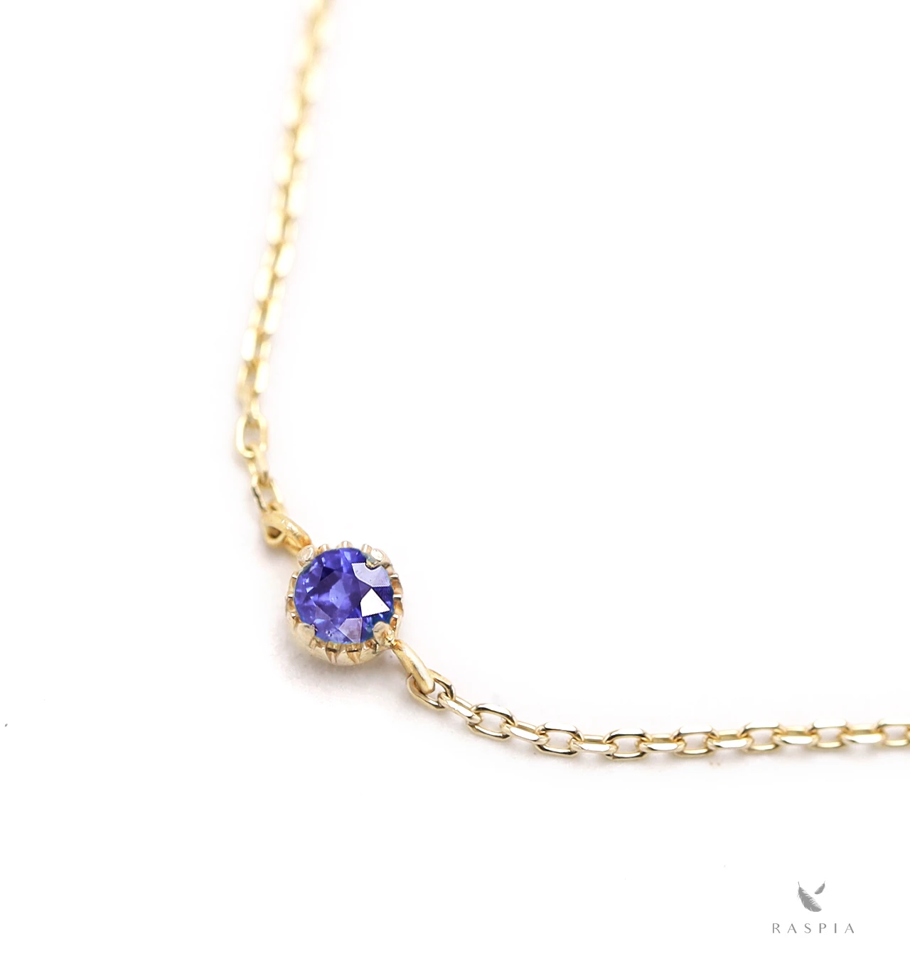 まるでスミレの花の色を映したような青みががかった紫色が美しい、バイオレットブルーサファイアを使用した、シンプルな一粒ブレスレットです。サファイアは9月の誕生石です。色彩豊かなサファイアの中でも、ひときわ上品な色味と透明感に満ちた輝きが魅力的なバイオレットサファイアを使用しました。