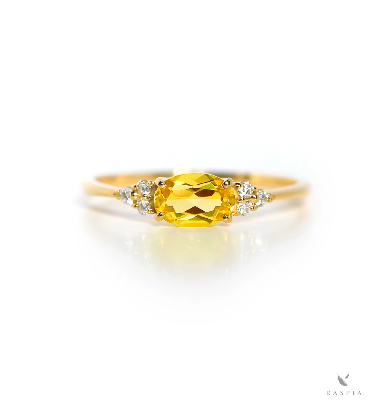 イエローサファイアのオーバルカットをメインに、6つのメレダイヤを左右にセットしたK18リングです。明るく輝く黄色が美しいイエローサファイアとダイヤモンド、ゴールドの金具の色合いが美しく調和し、華やかで上品な印象を与えてくれます。イエローサファイアは9月の誕生石です。