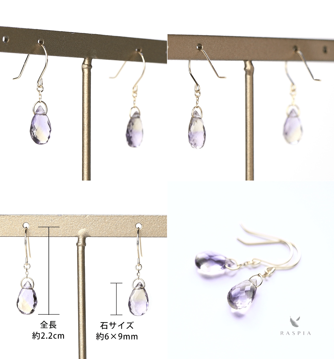 RASPIA(ラスピア)は、シンプルで大人可愛いデザインをイメージし、カラーストーン/天然石とK10(10金)/K18(18金)の本物のゴールド素材を使って手作りしています。