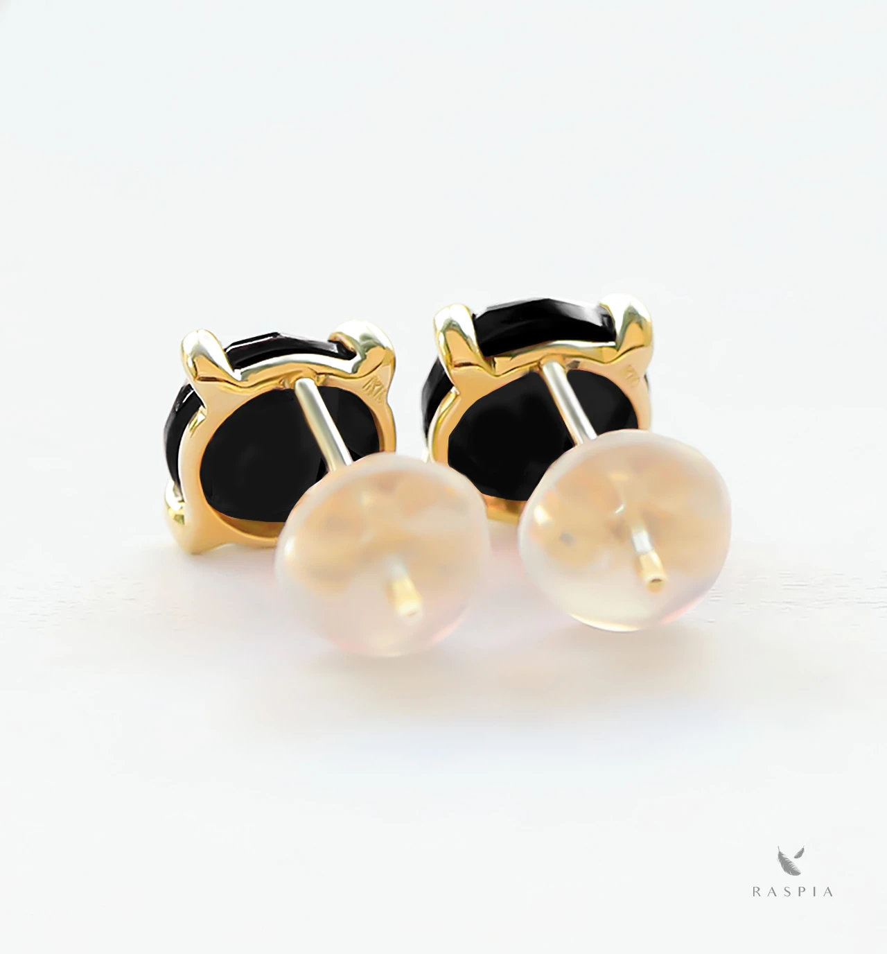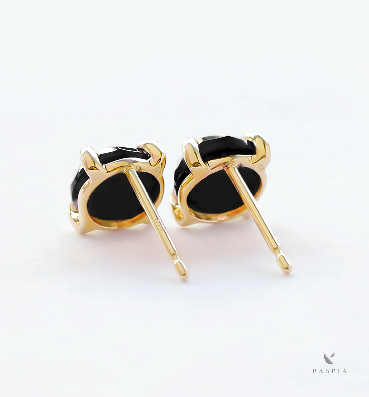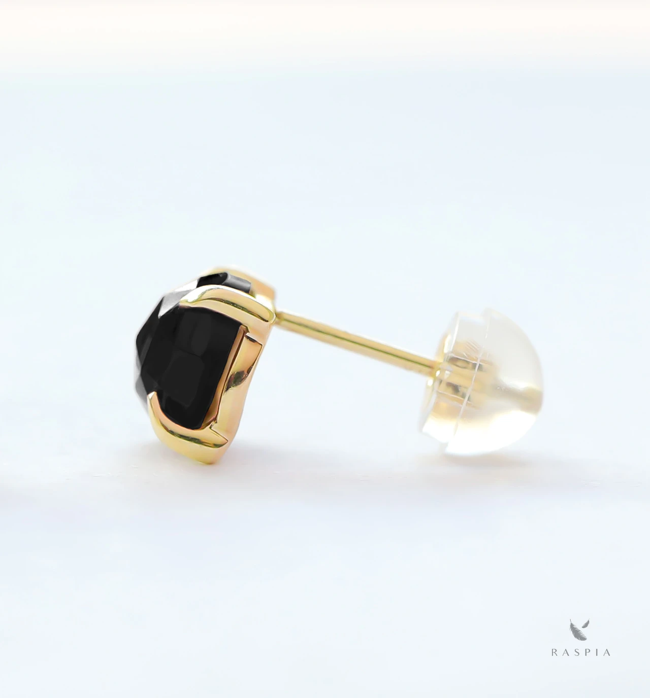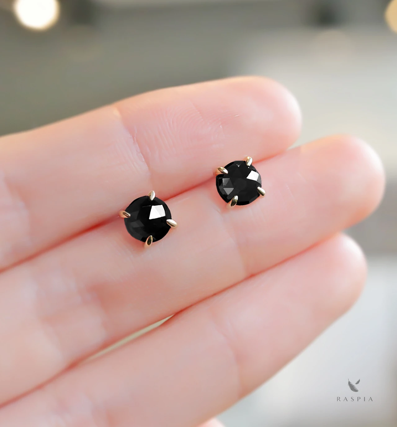 大人な印象のブラックスピネルを使用したK10ポストピアスです。ローズカットの表面に施された24面のカット面が光を反射し、キラキラと美しく輝きます。