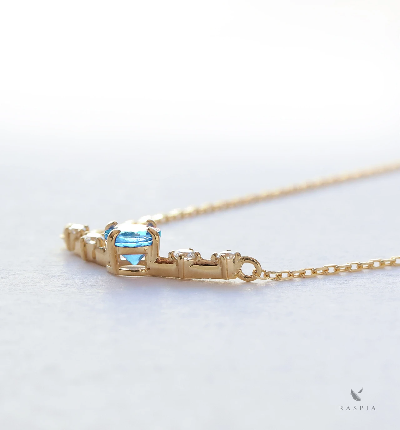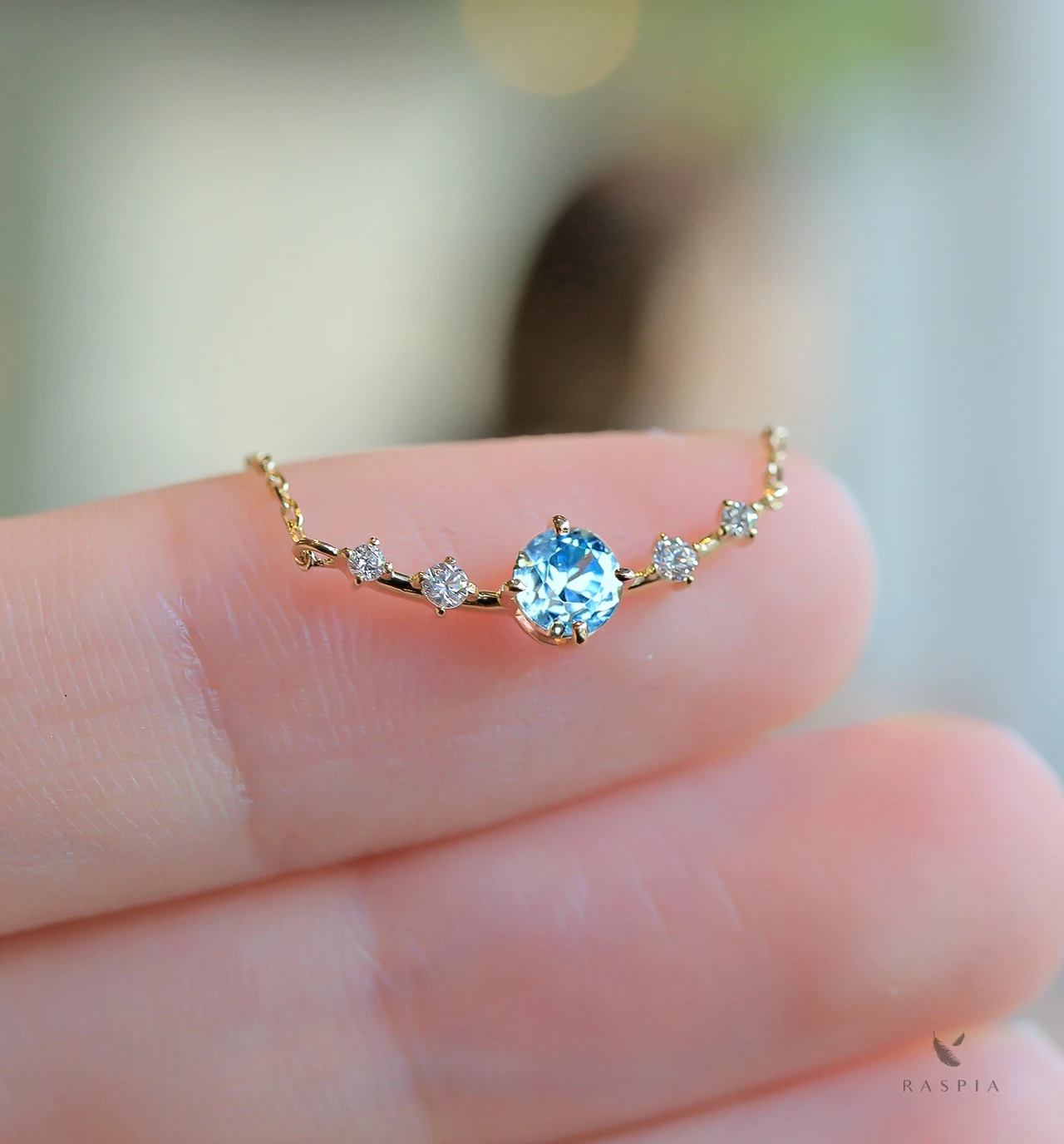 鮮やかなブルーカラーが印象的なブルージルコンを使ったK18ネックレス。ブルージルコンは、アクアマリンやサファイアとは異なる、独特なブルーカラーが魅力です。カラー、カット・研磨の質、透明度など、美しいルースを1粒ずつ厳選して買付しております。