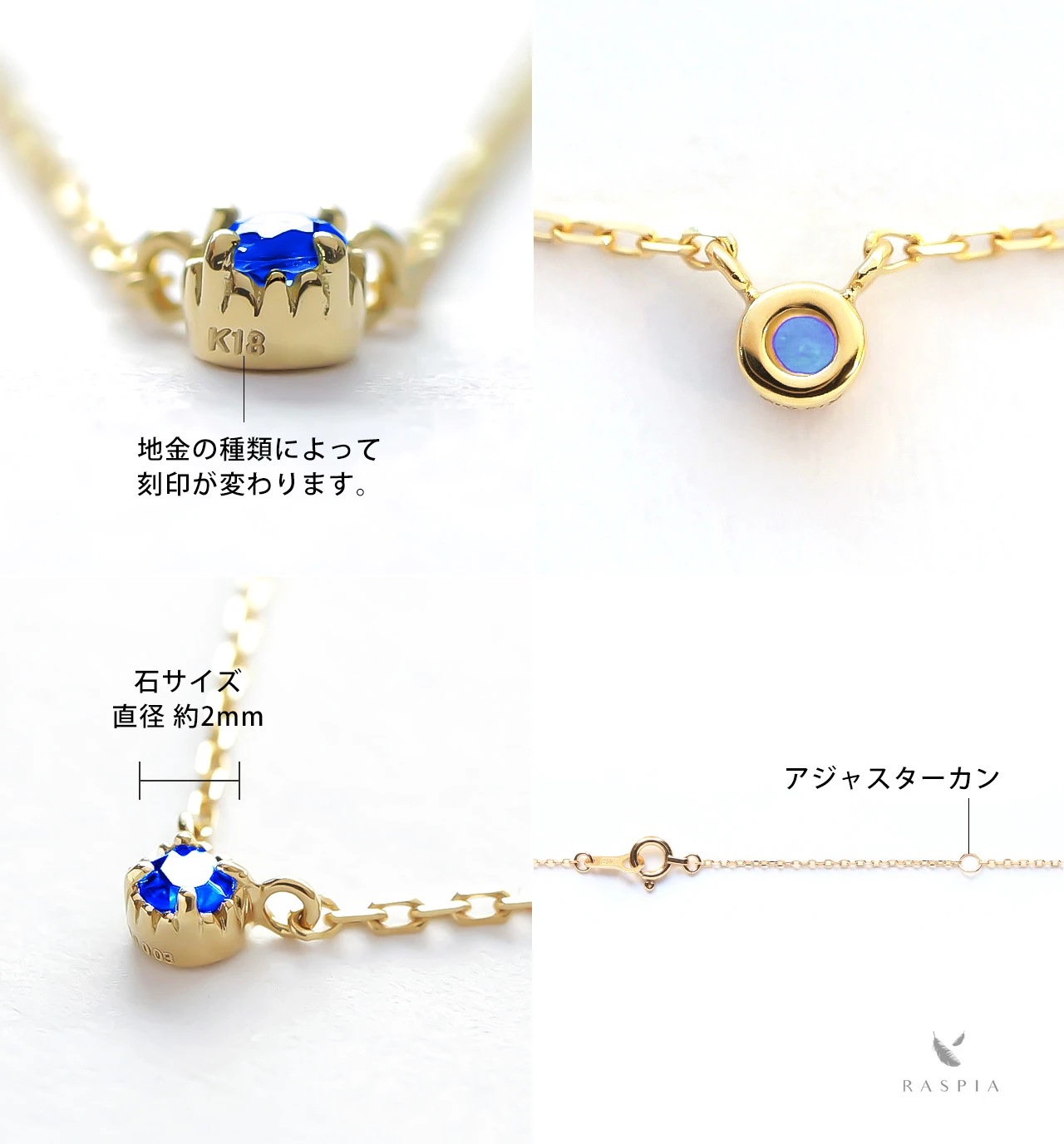 RASPIA(ラスピア)は、シンプルで大人可愛いデザインをイメージし、カラーストーン/天然石とK10(10金)/K18(18金)の本物のゴールド素材を使って手作りしています。