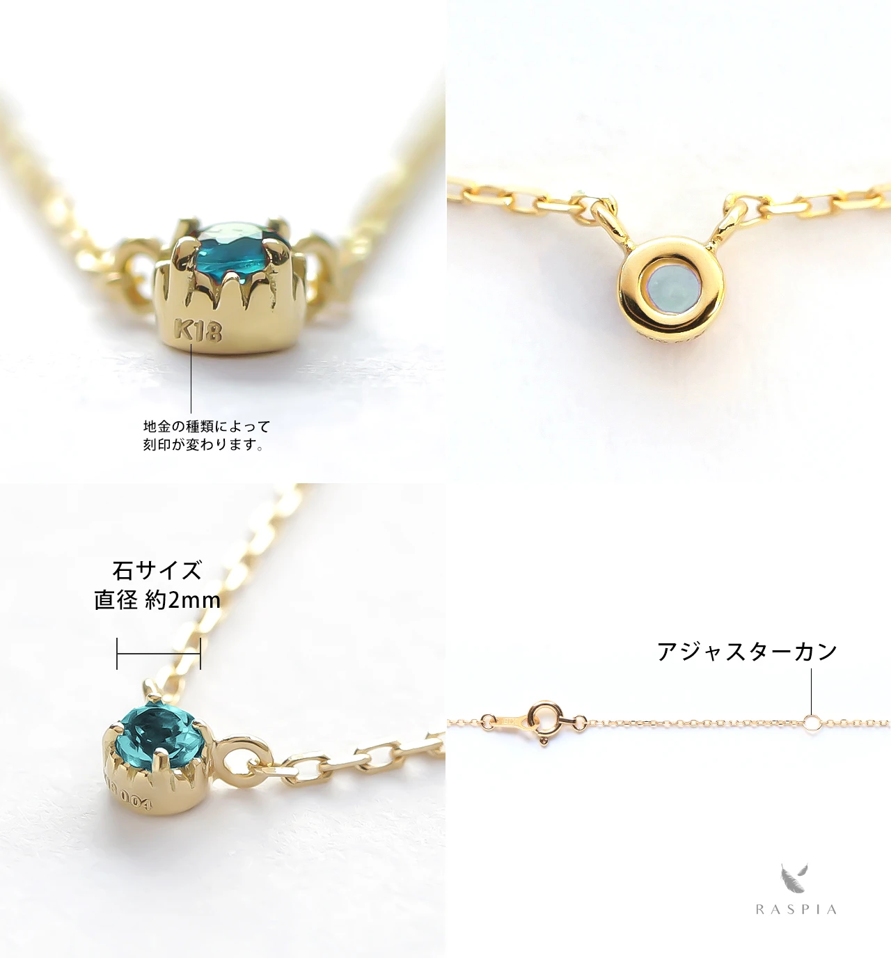 RASPIA(ラスピア)は、シンプルで大人可愛いデザインをイメージし、カラーストーン/天然石とK10(10金)/K18(18金)の本物のゴールド素材を使って手作りしています。